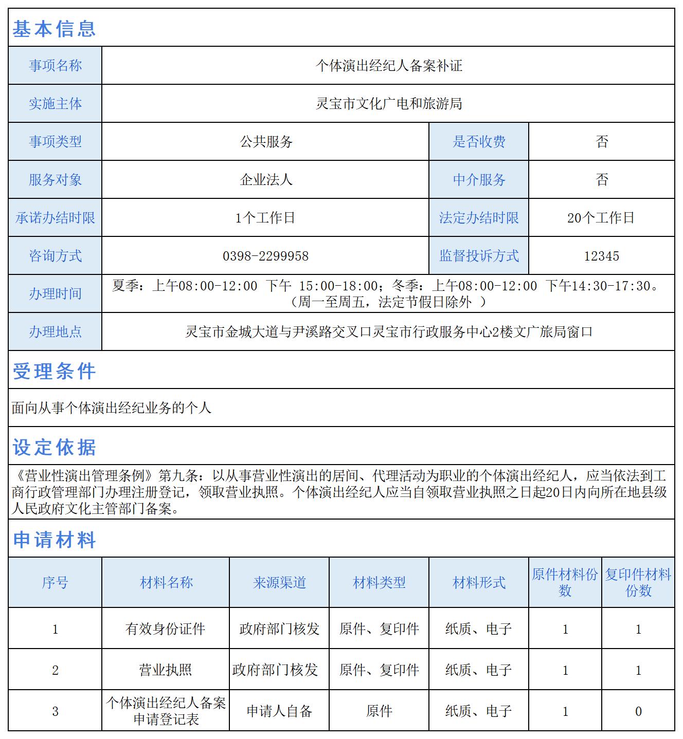 个体演出经纪人备案补证