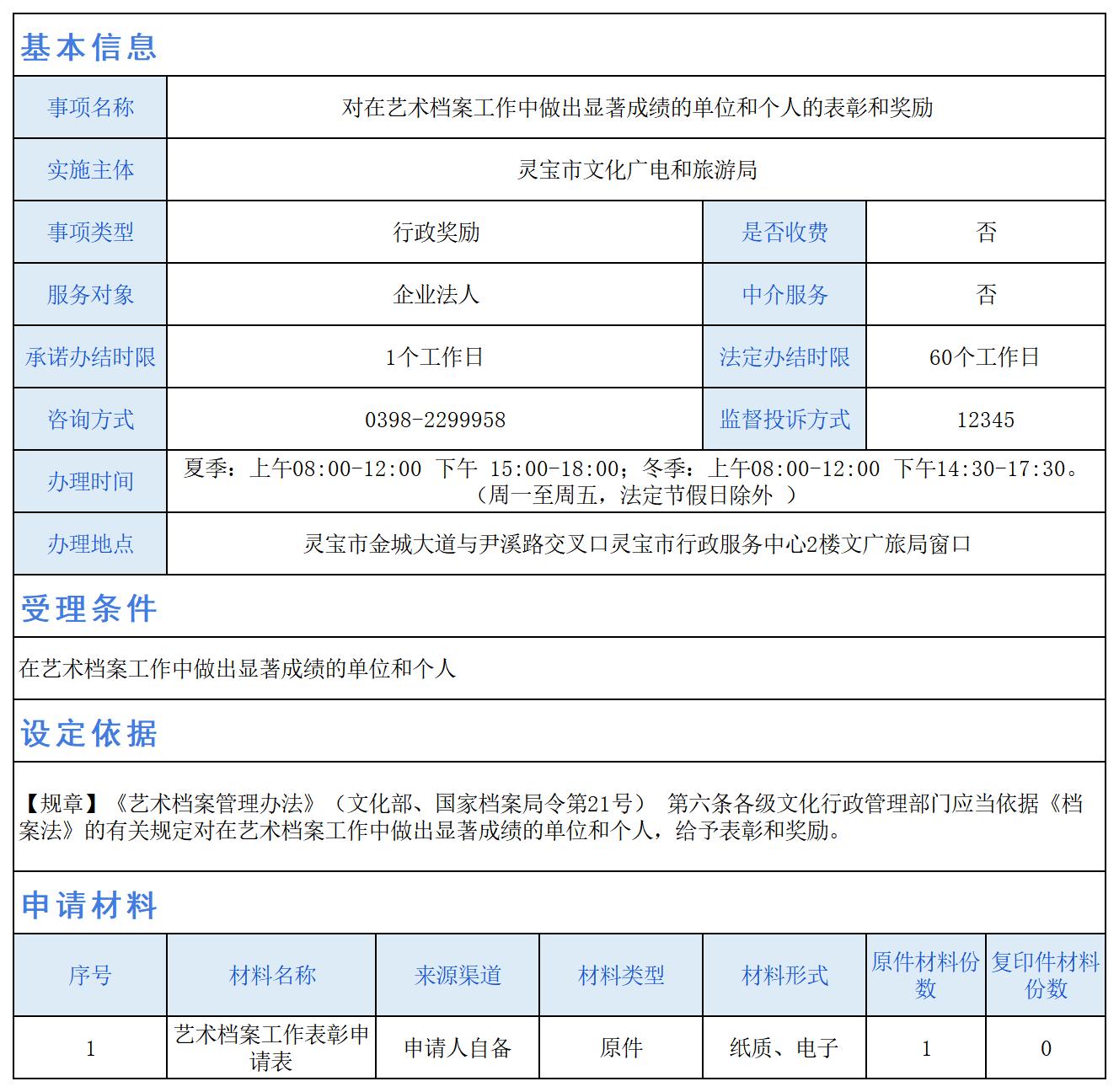 对在艺术档案工作中做出显著成绩的单位和个人的表彰和奖励