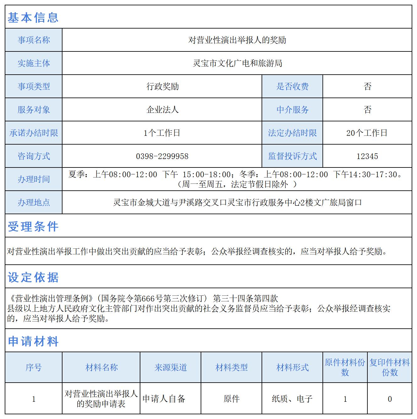 对营业性演出举报人的奖励