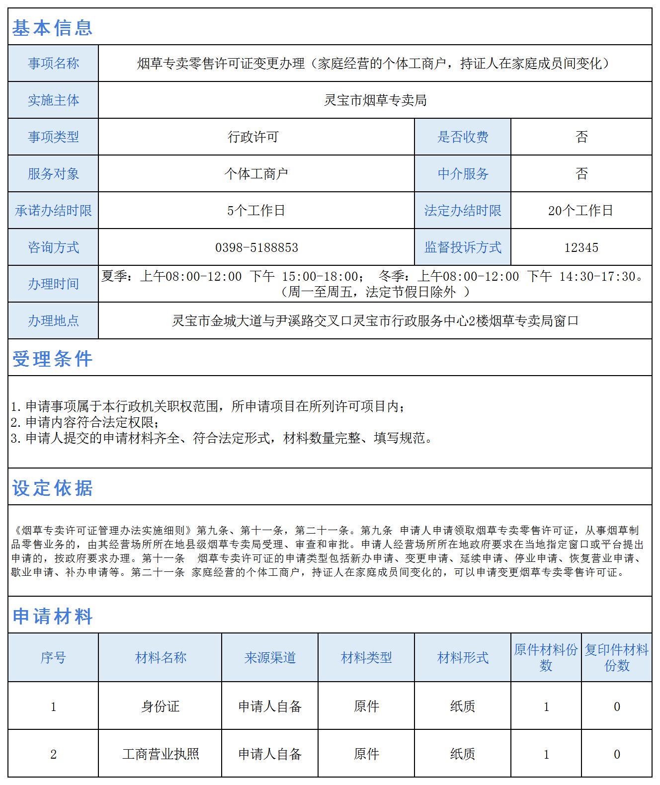 烟草专卖零售许可证变更办理(家庭经营的个体工商户,持证人在家庭成员间变化)