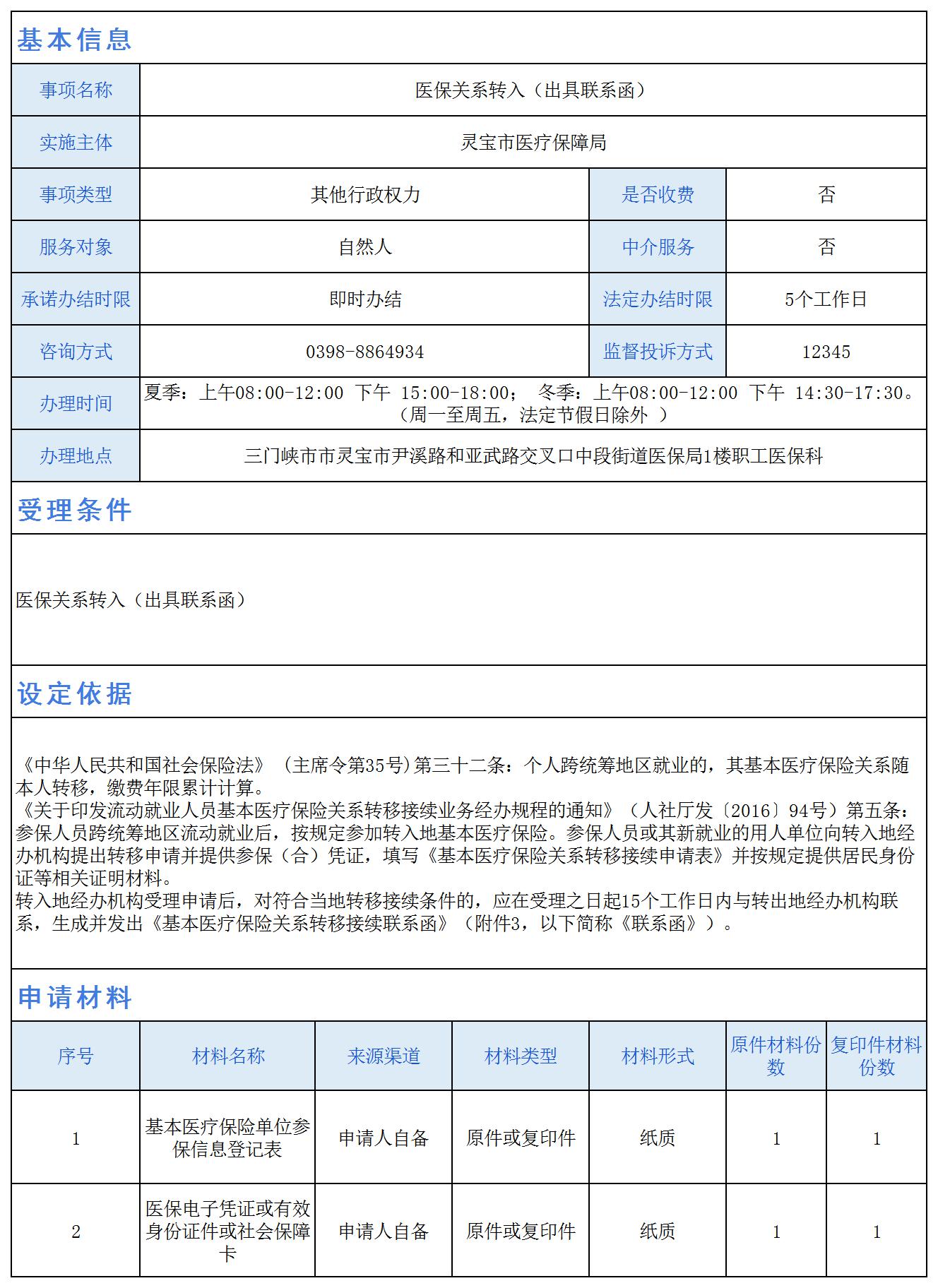 医保关系转入《出具联系函》