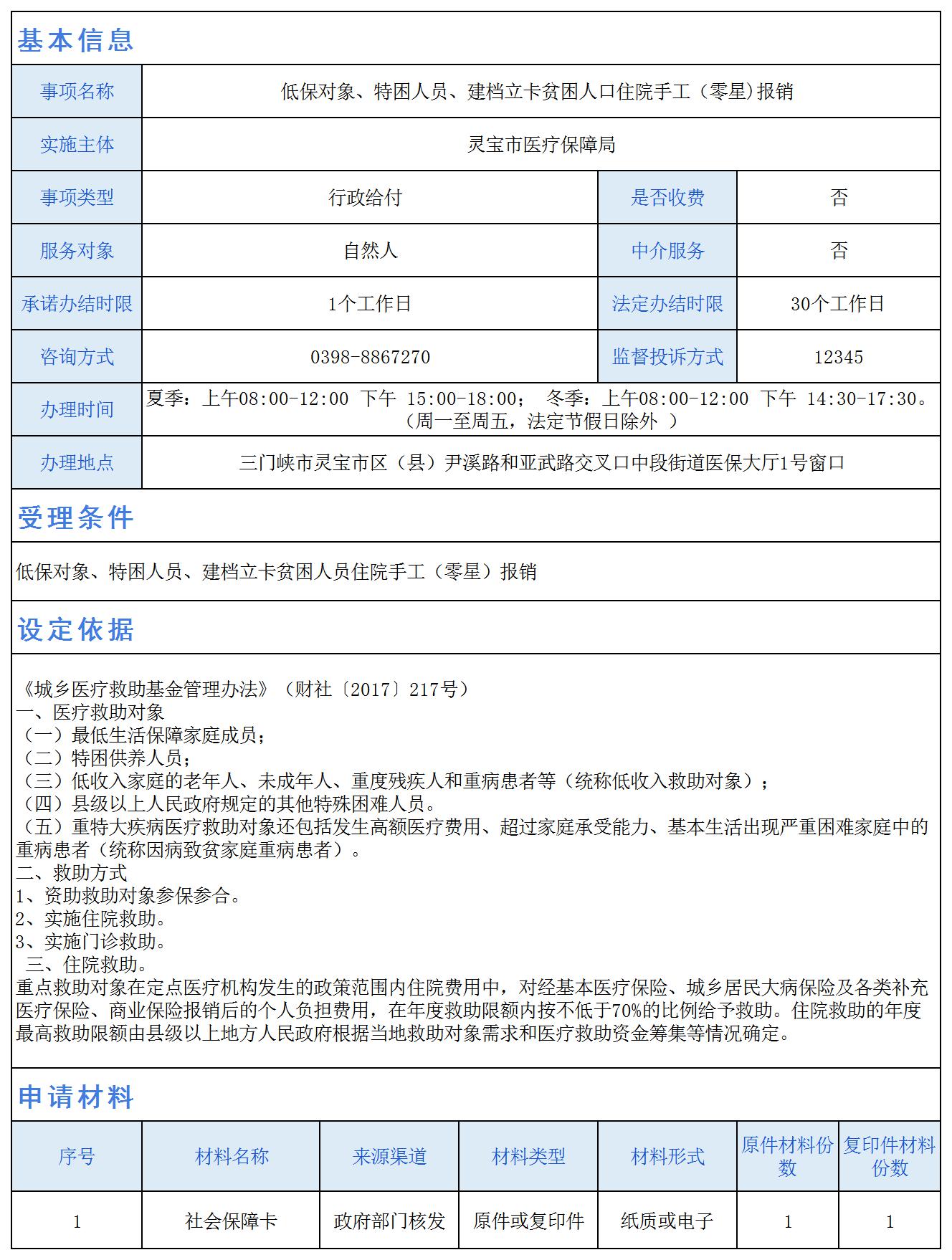 低保对象、特困人员、建档立卡贫困人口住院手工(零星)报销