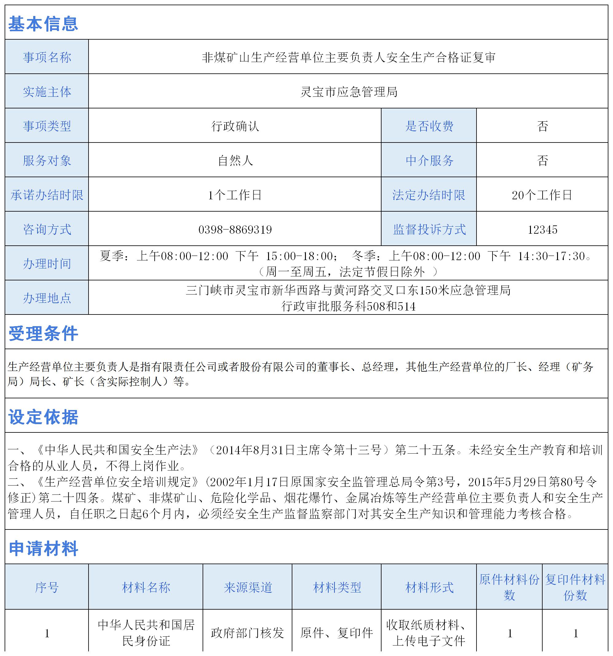 非煤矿山生产经营单位主要负责人安全生产合格证复审