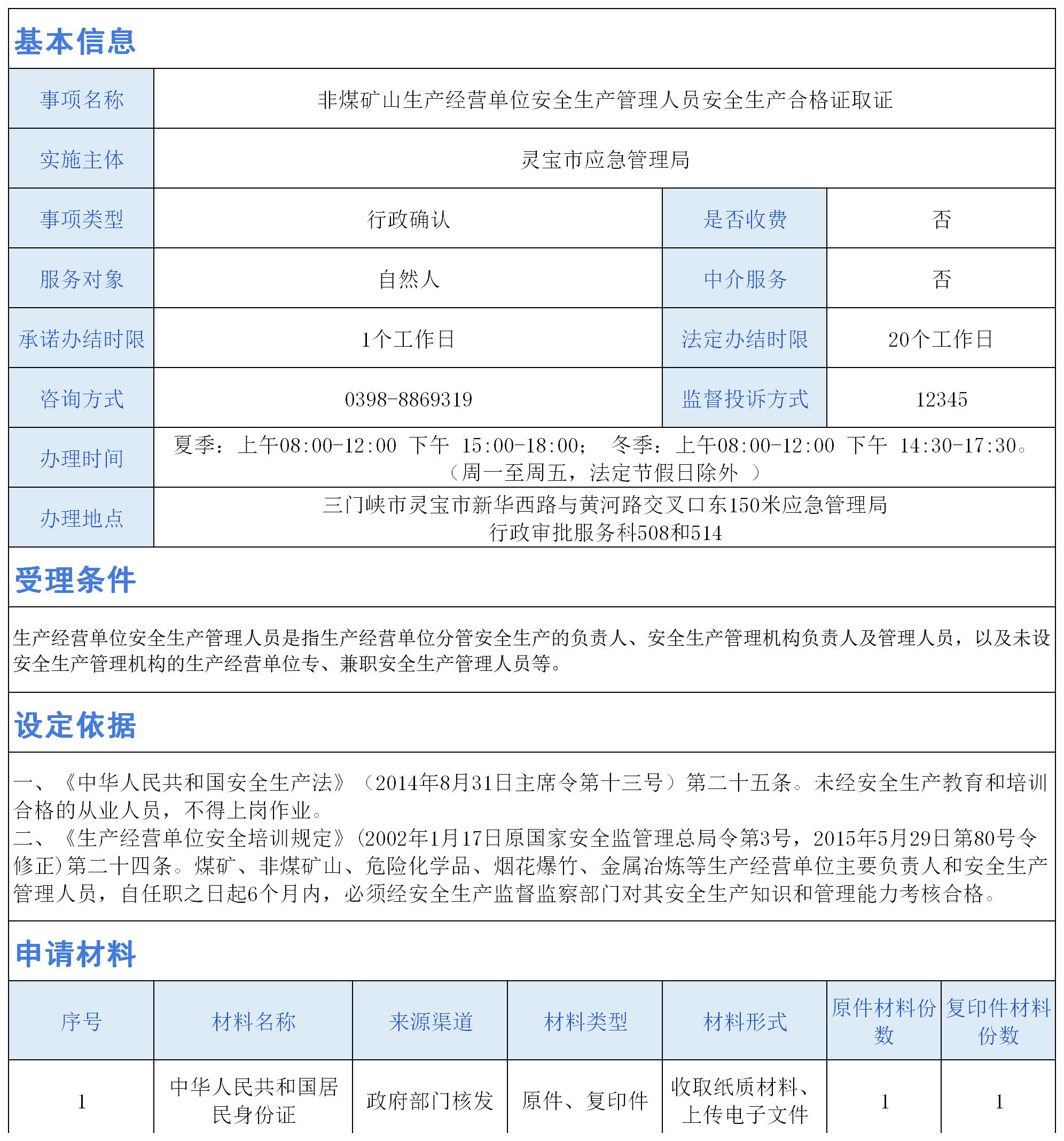 非煤矿山生产经营单位安全生产管理人员安全生产合格证取证