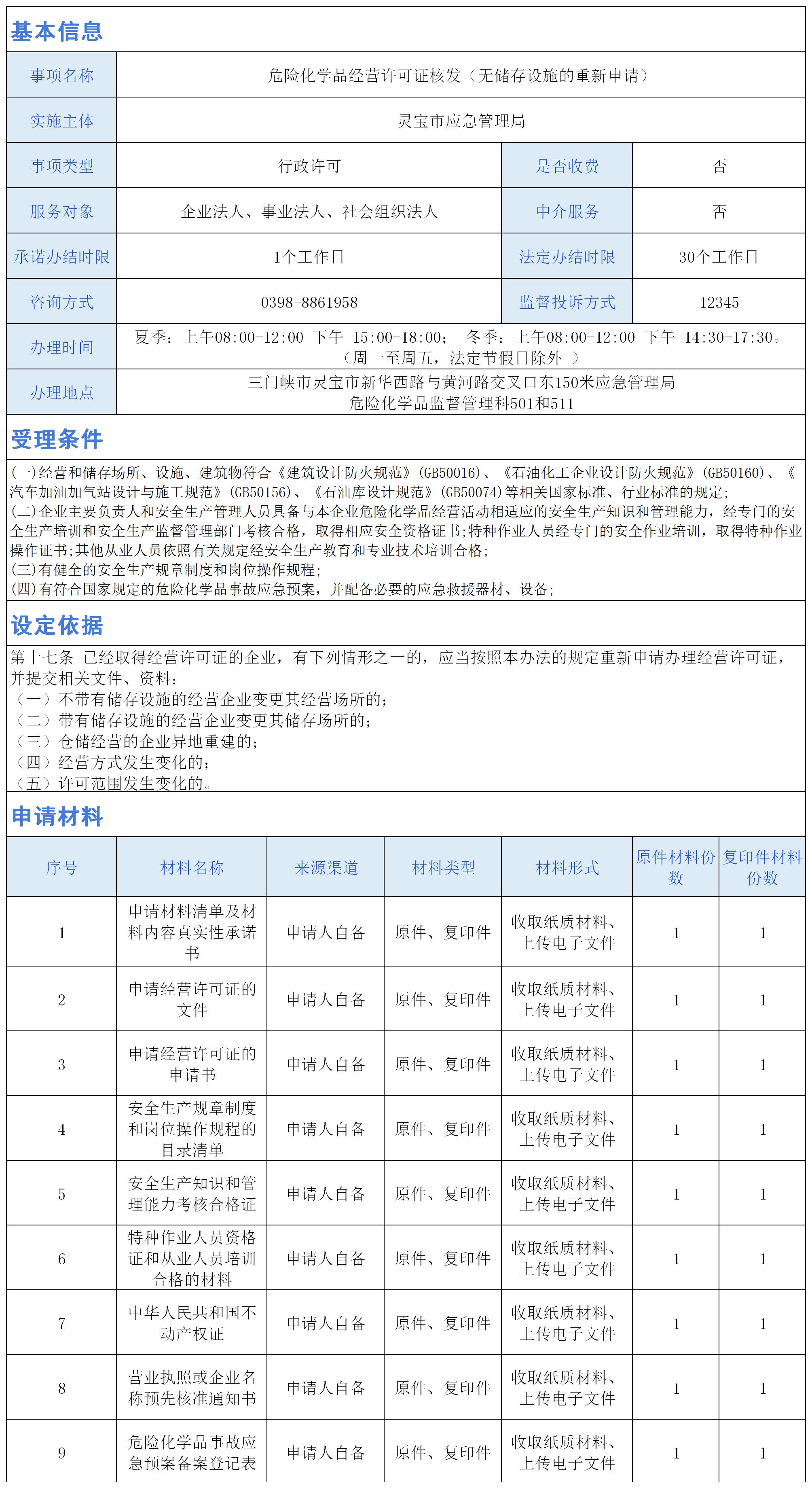 危险化学品经营许可证核发(无储存设施的重新申请)