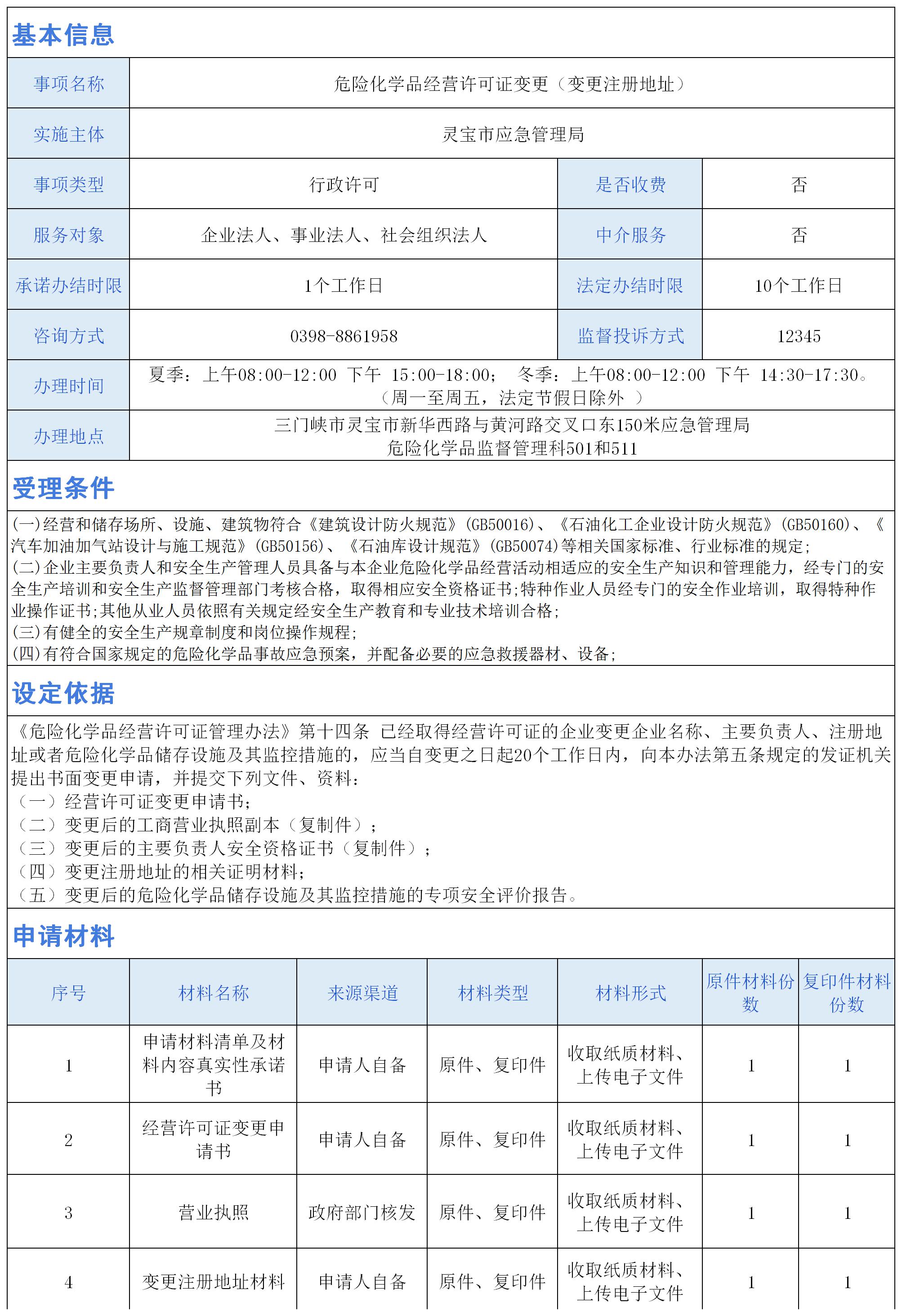 危险化学品经营许可证变更(变更注册地址)