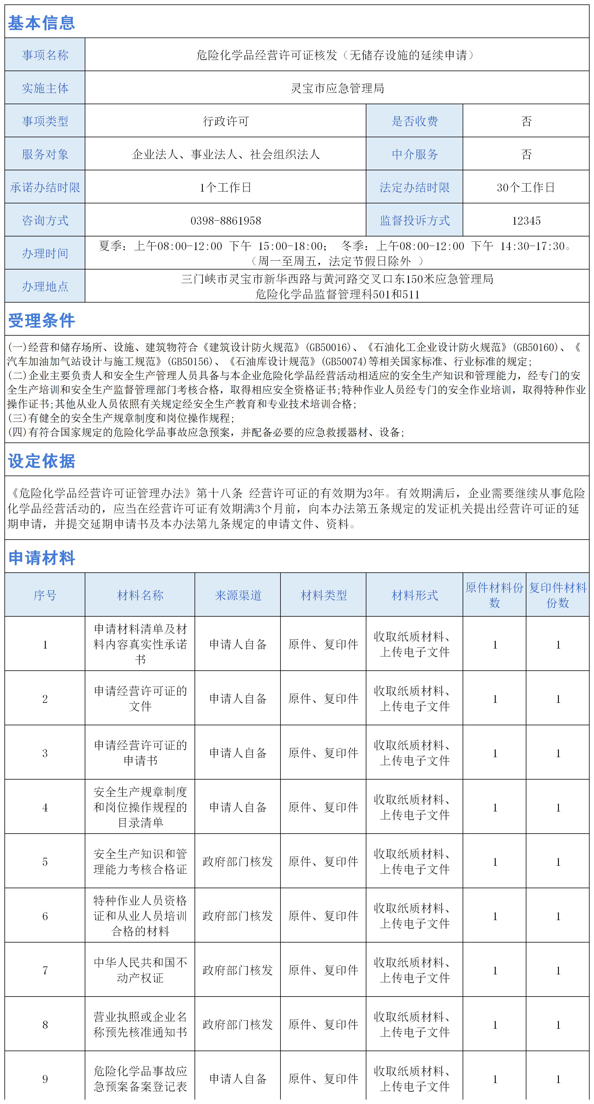 危险化学品经营许可证核发(无储存设施的延续申请)
