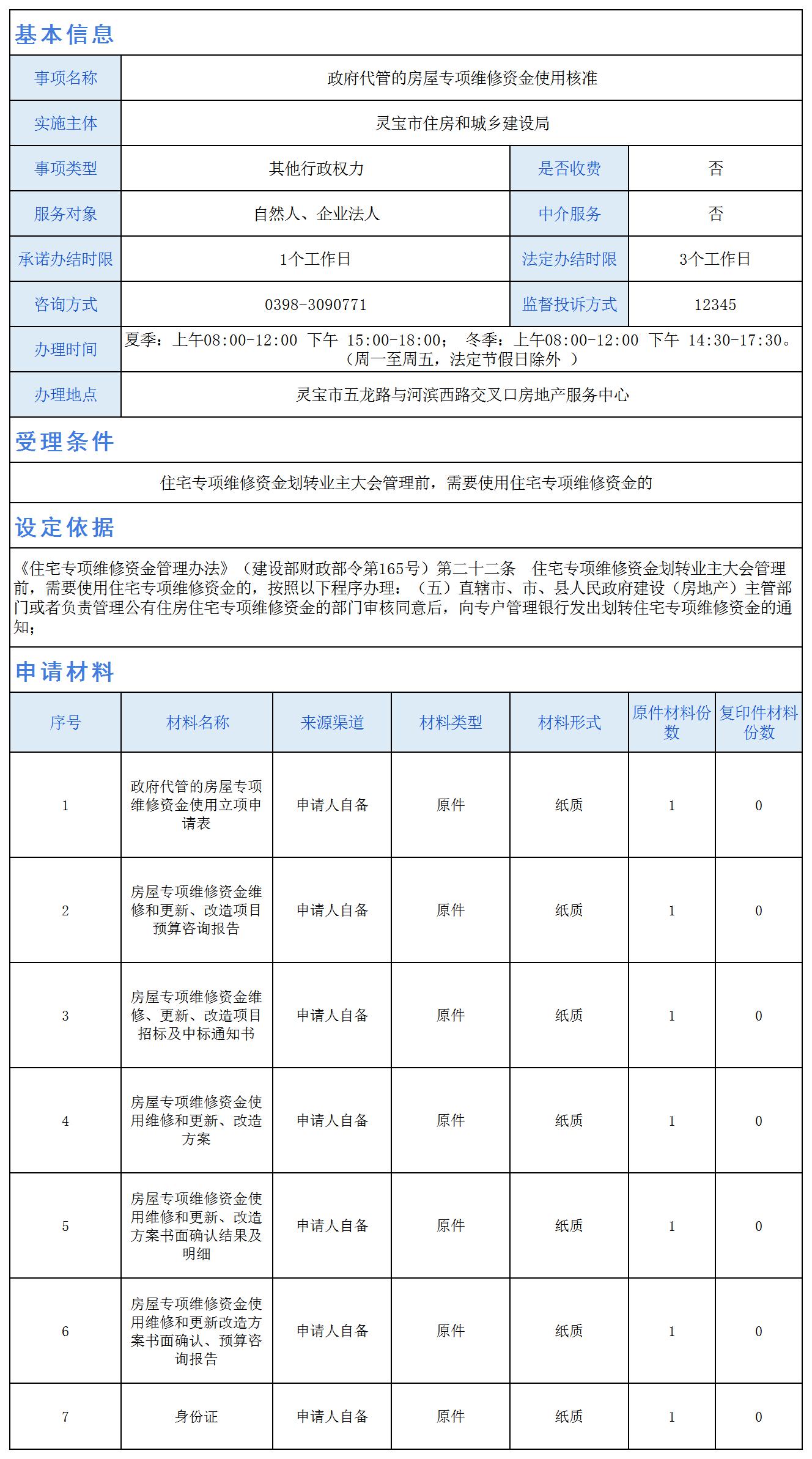 政府代管的房屋专项维修资金使用核准