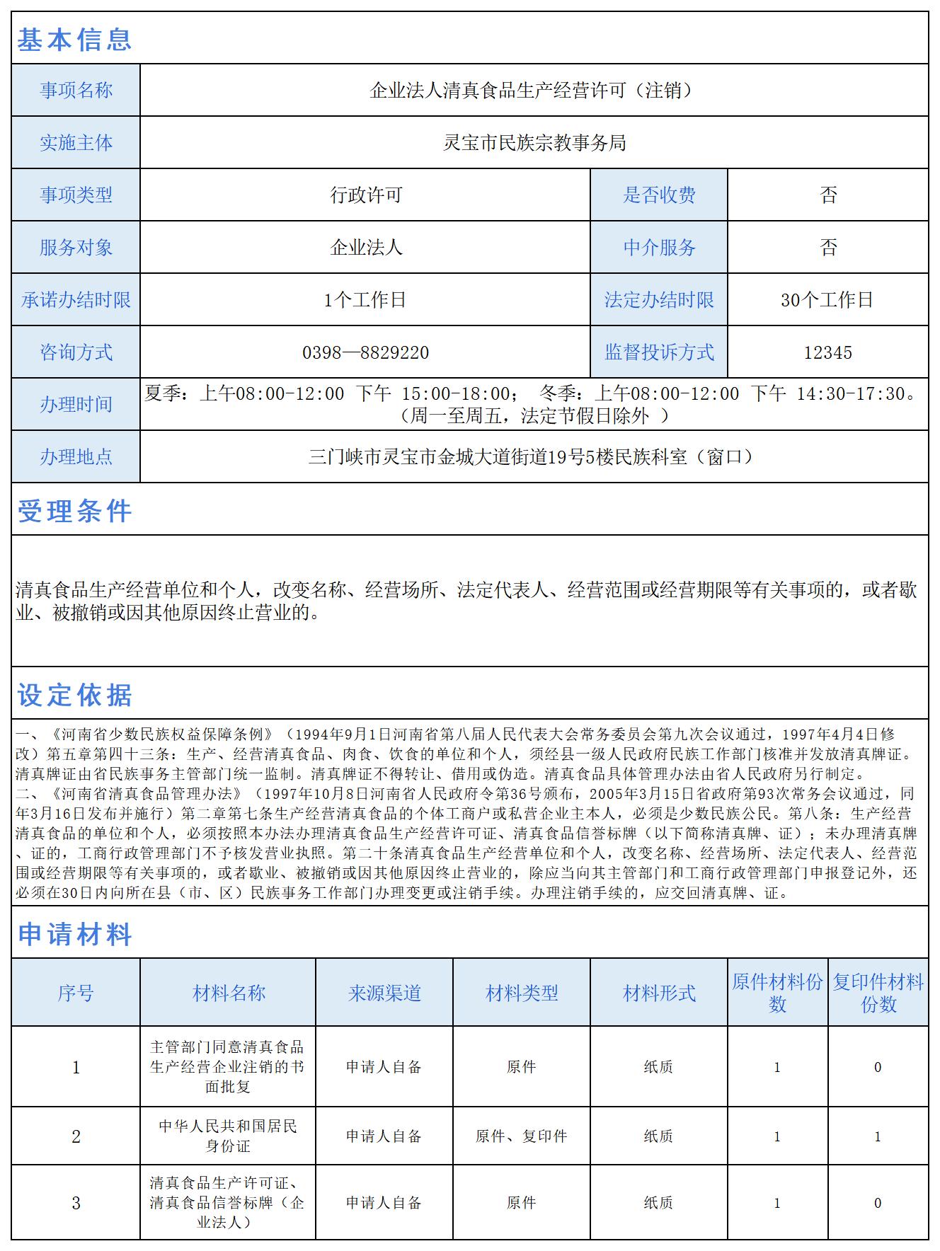 企业法人清真食品生产经营许可(注销)