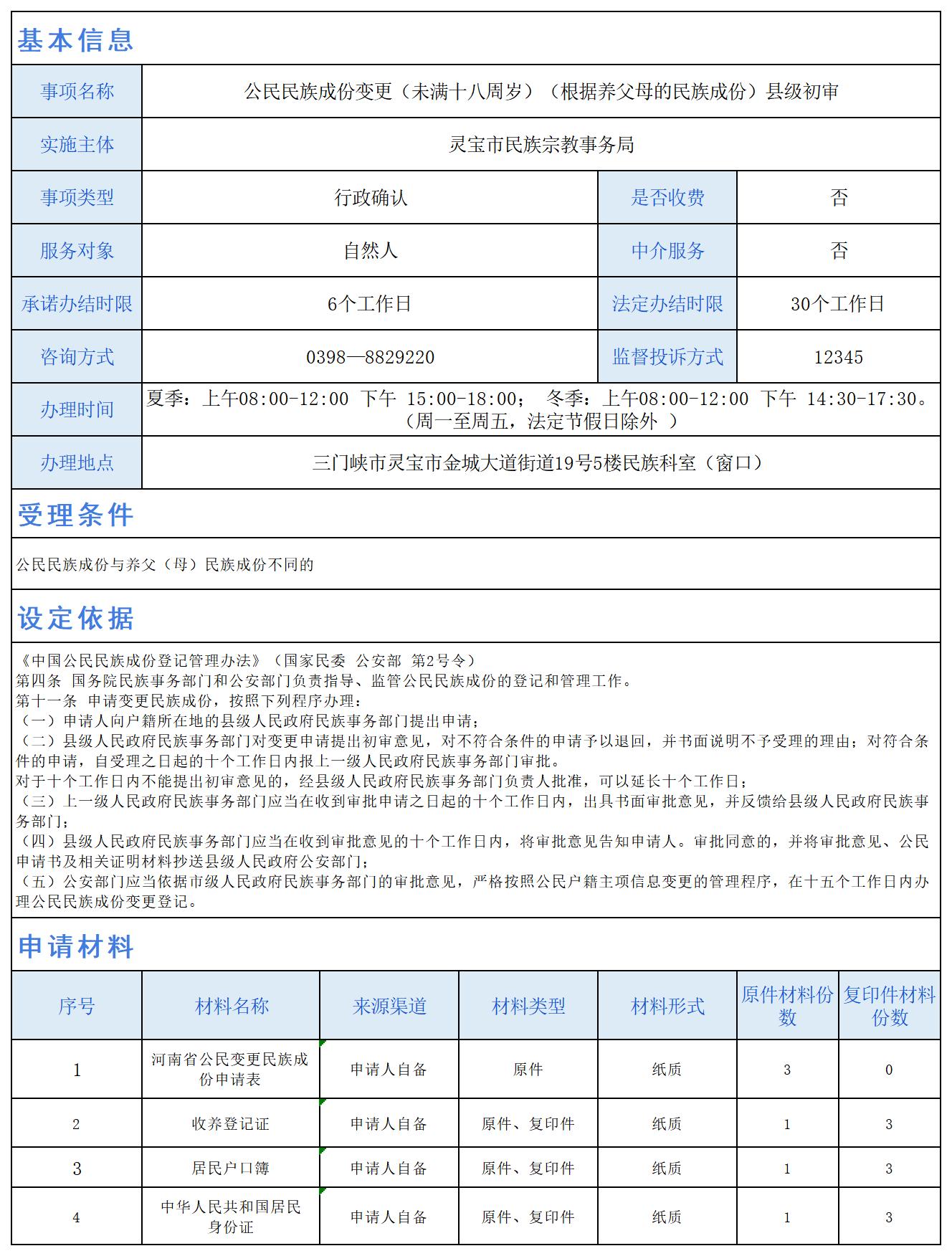 公民民族成份变更(未满十八周岁)(根据养父母的民族成份)县级初审