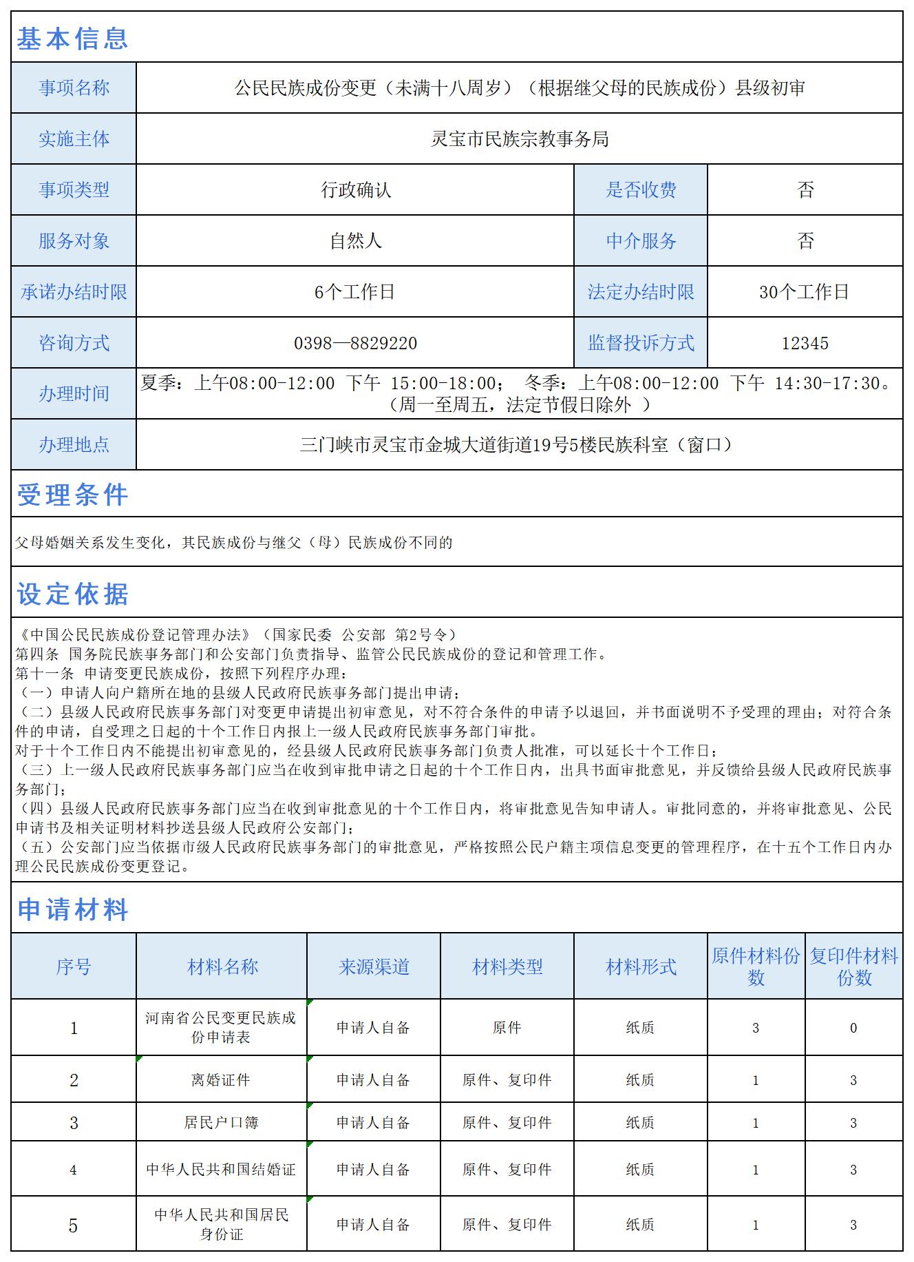 公民民族成份变更(未满十八周岁)(根据继父母的民族成份)县级初审