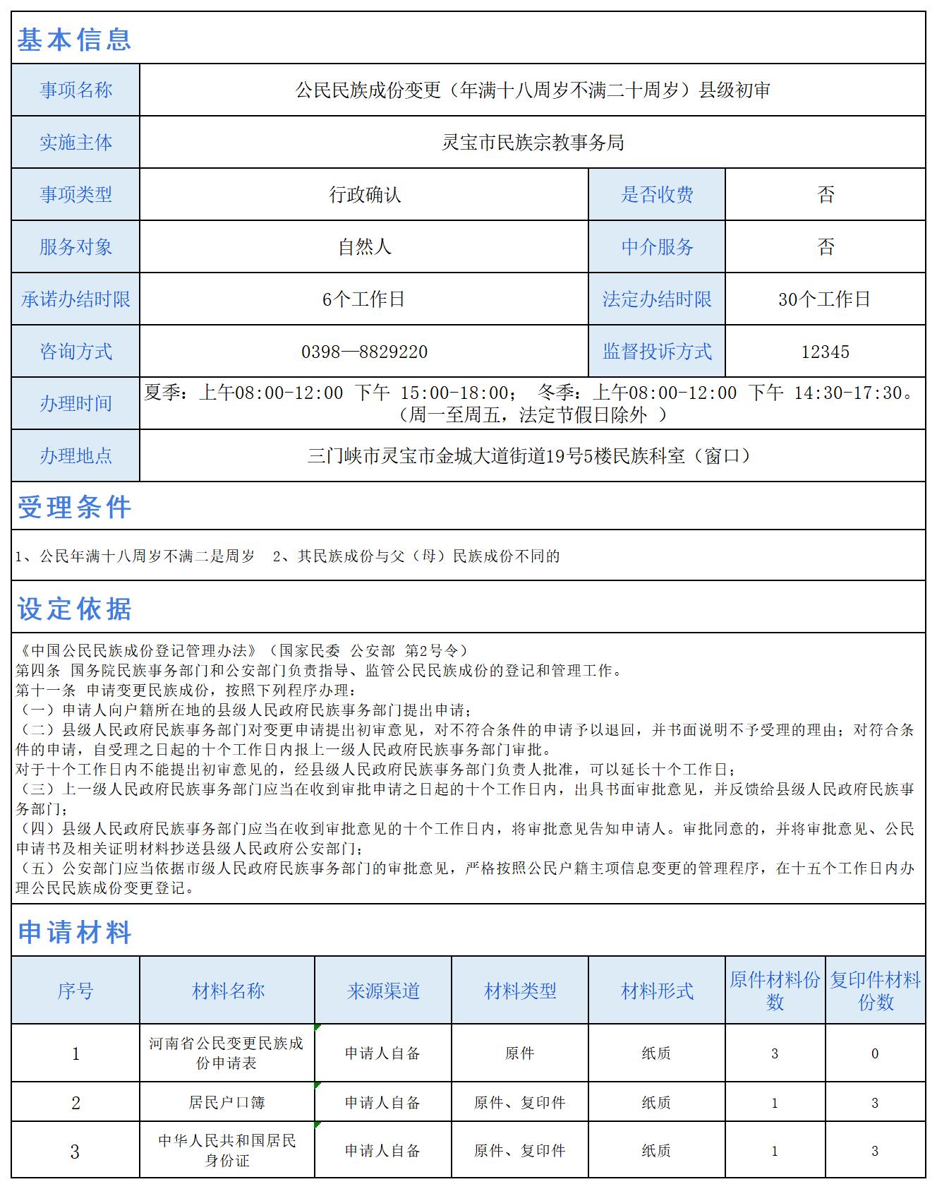 公民民族成份变更(年满十八周岁不满二十周岁)县级初审