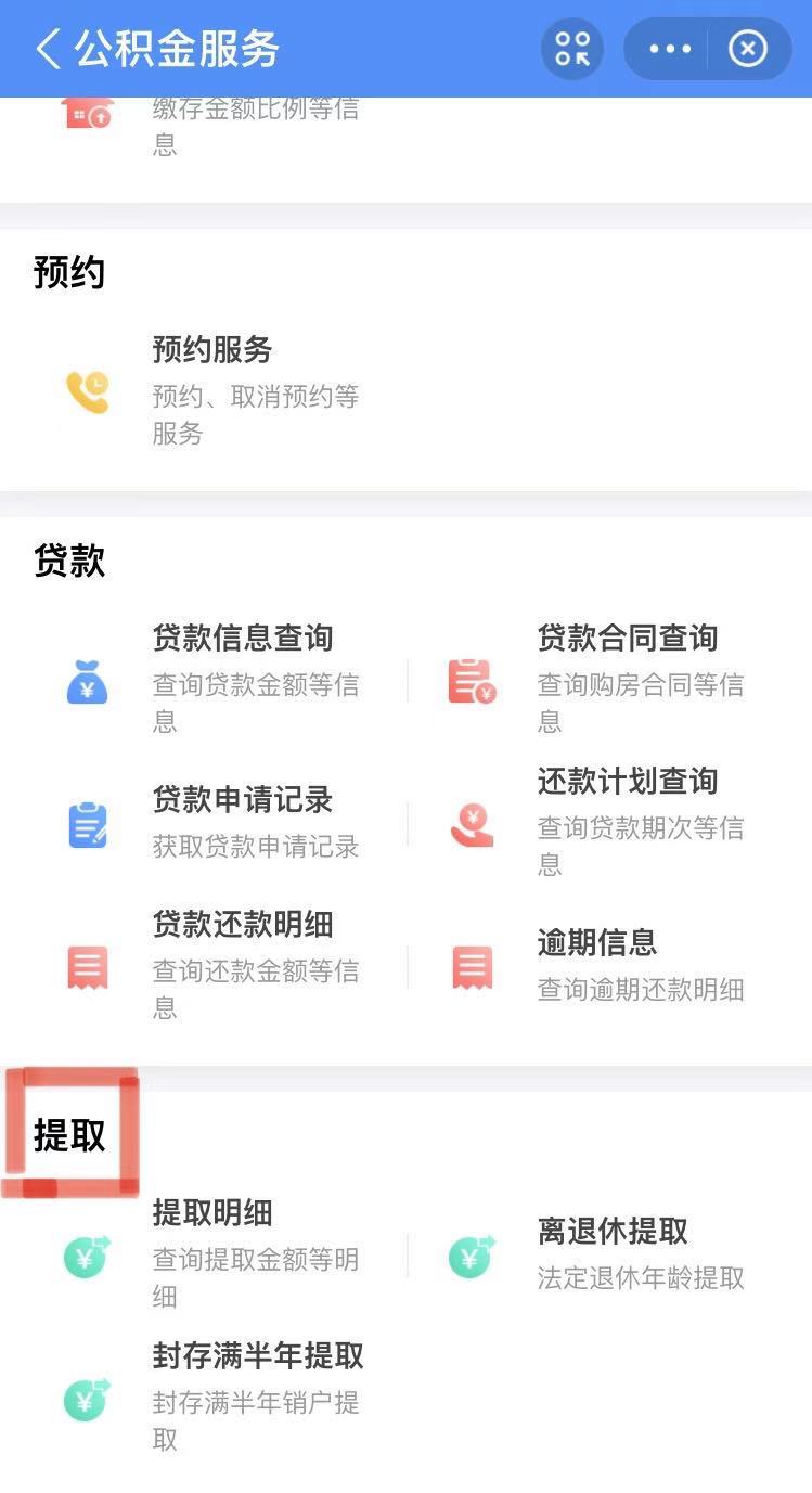 三、 公积金服务首页,进入提取模块,根据自身情况选择相关类型提取业务。具体可进行:提取明细查询、离退休提取业务办理。