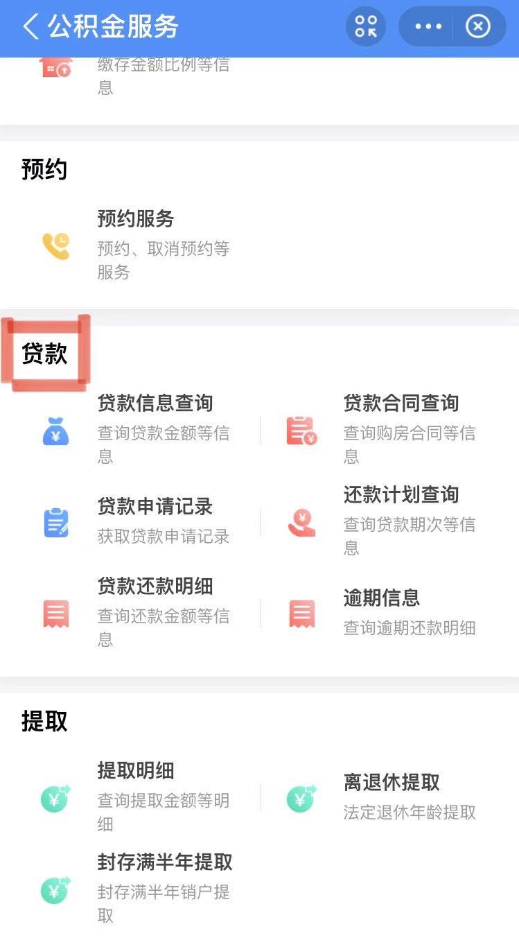 四、公积金服务首页,进入贷款模块,查询个人贷款信息。具体可进行:查询贷款信息、贷款合同、还款明细、逾期信息以及还款计划查询等业务,随后将会上线公积金贷款提前还款业务。