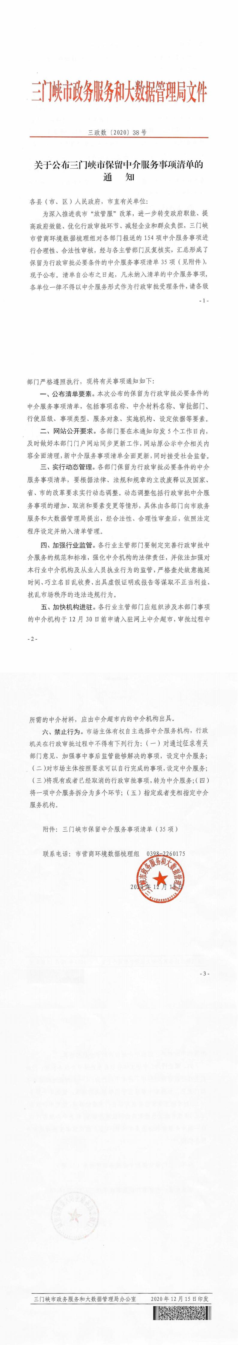 关于公布三门峡市保留中介服务事项清单的通知