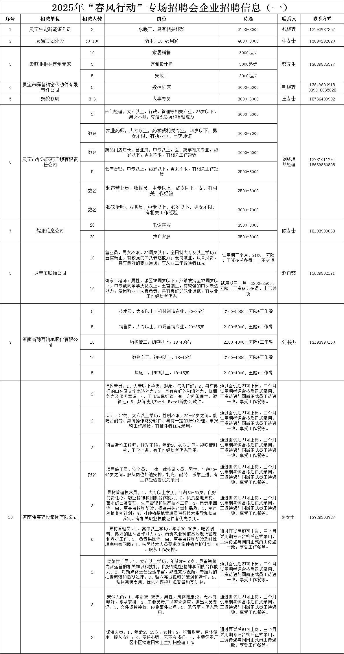 2025年“春风行动”专场招聘会企业招聘信息(一)