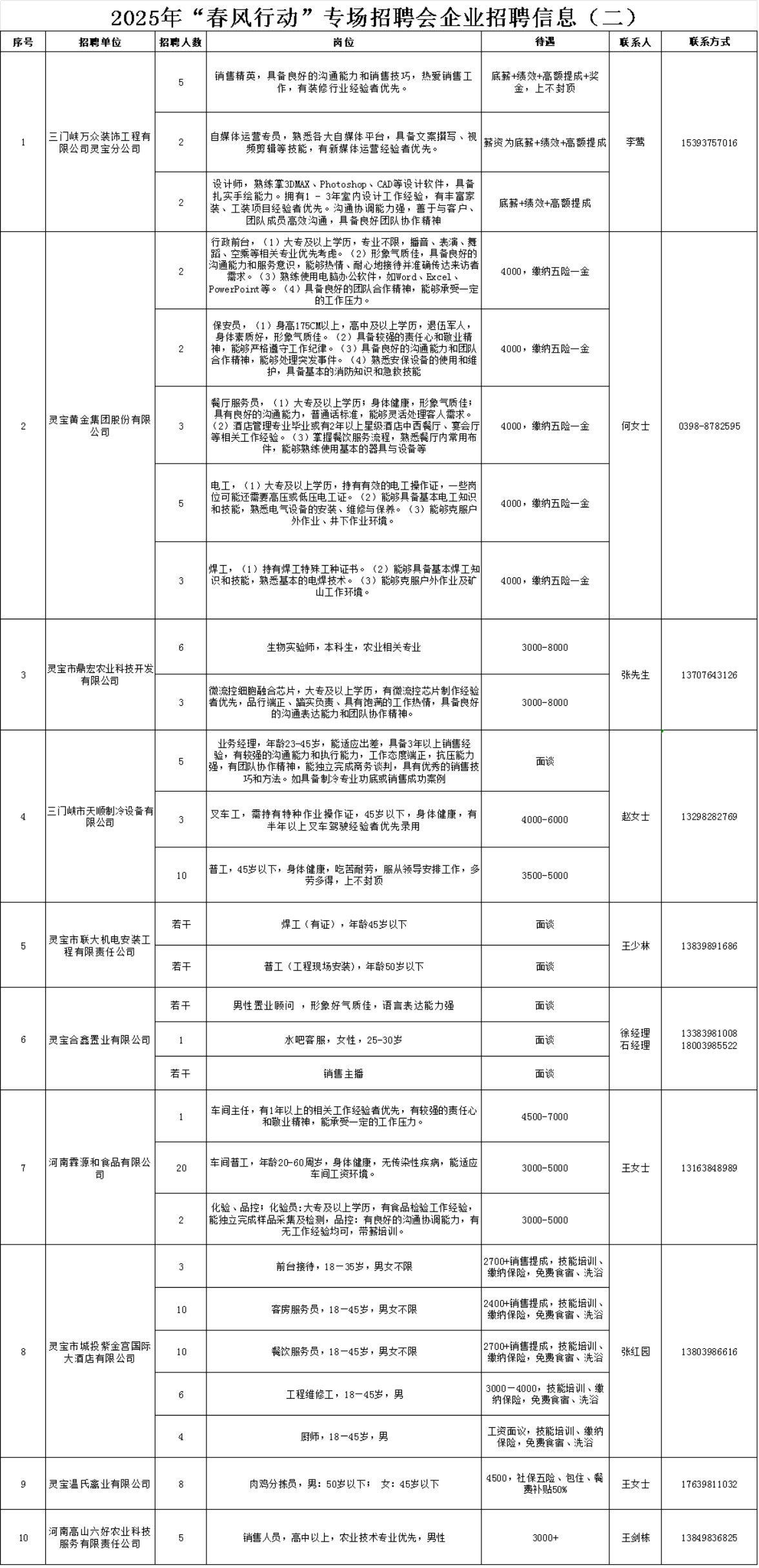 2025年“春风行动”专场招聘会企业招聘信息(二)