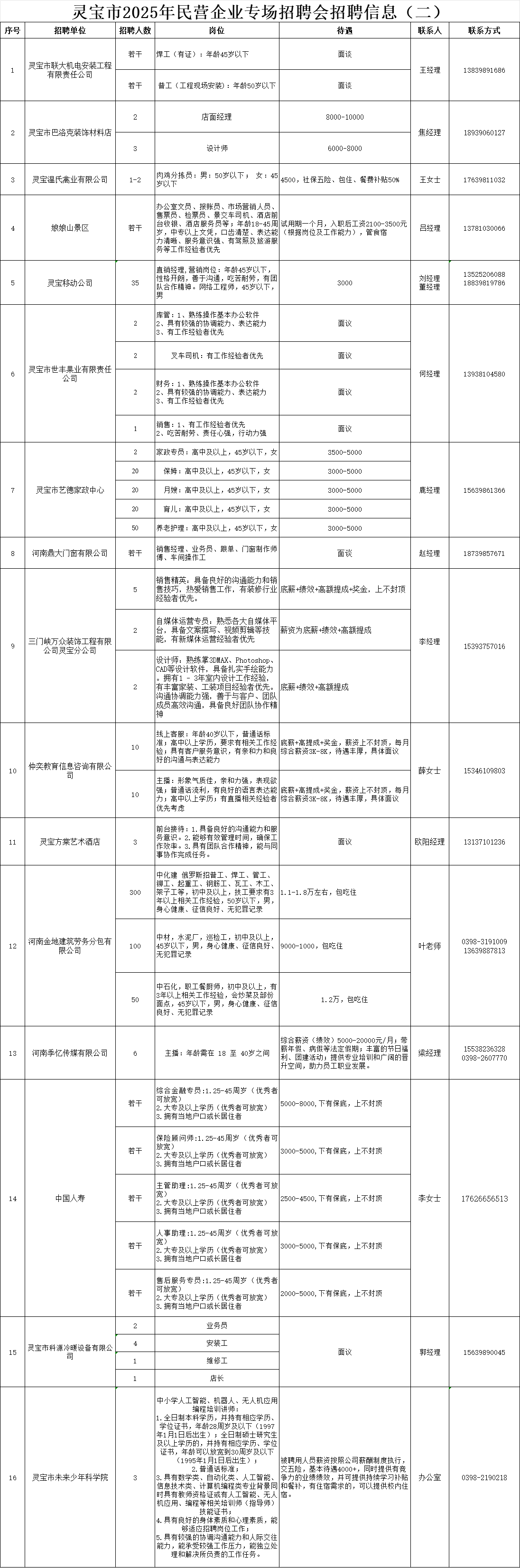 灵宝市2025年民营企业专场招聘会招聘信息(二)