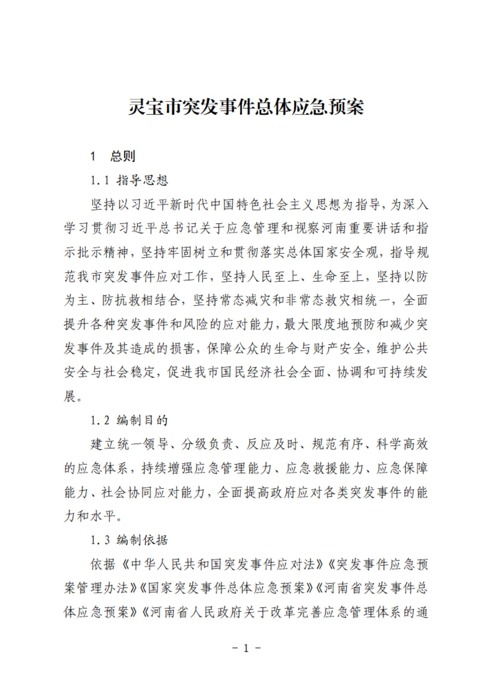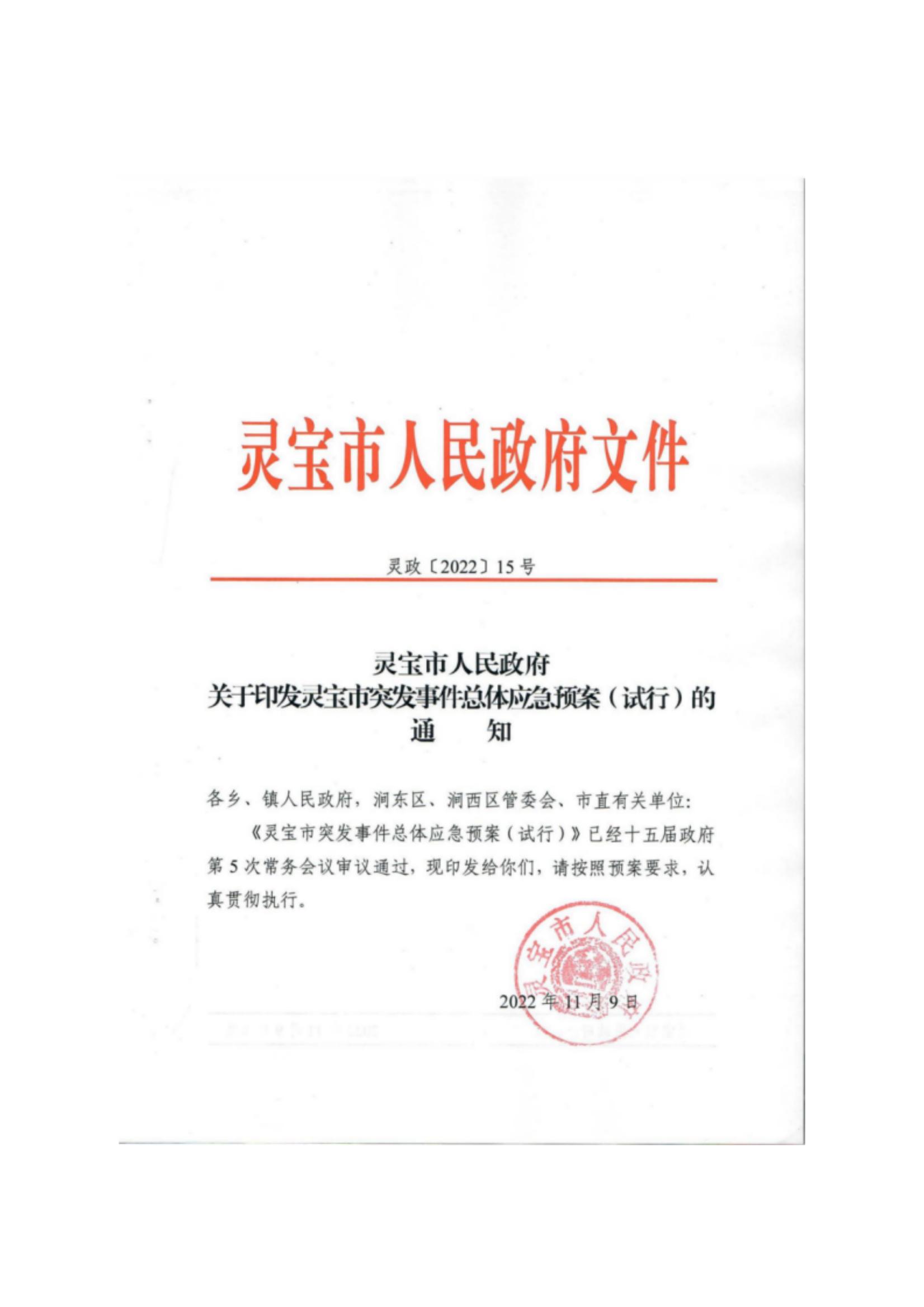 附件:灵政[2022]15号灵宝市突发事件总体应急预案(试行)