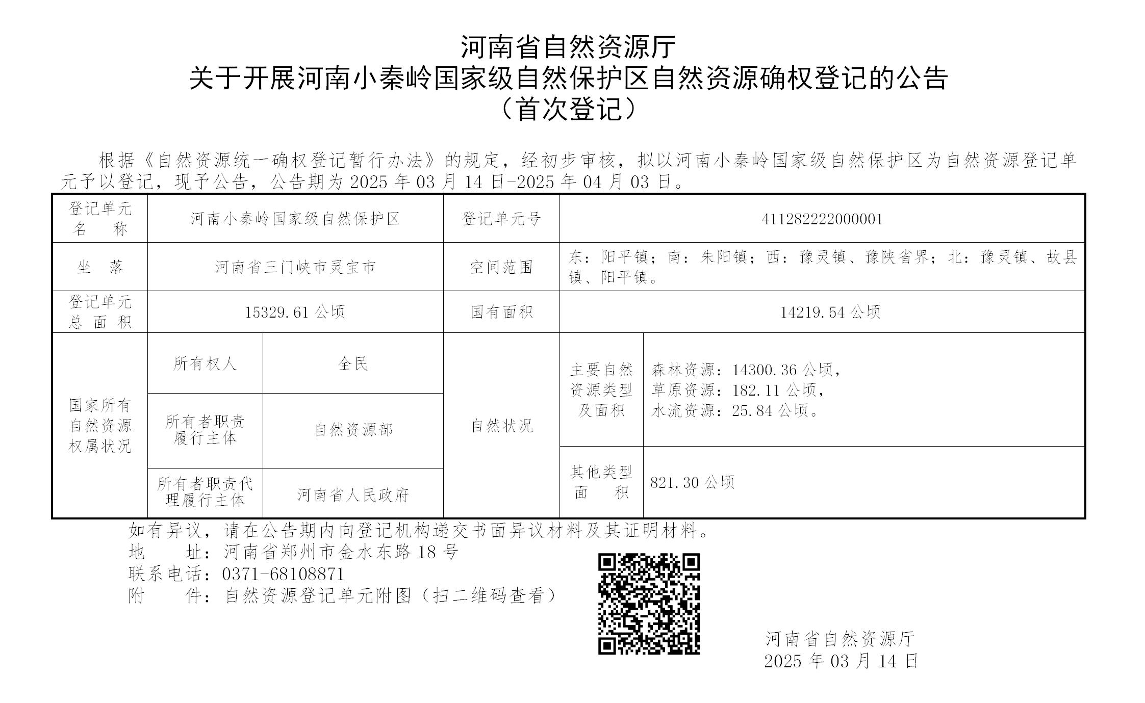 河南省自然资源厅------关于开展河南小秦岭国家级自然保护区自然资源确权登记的公告