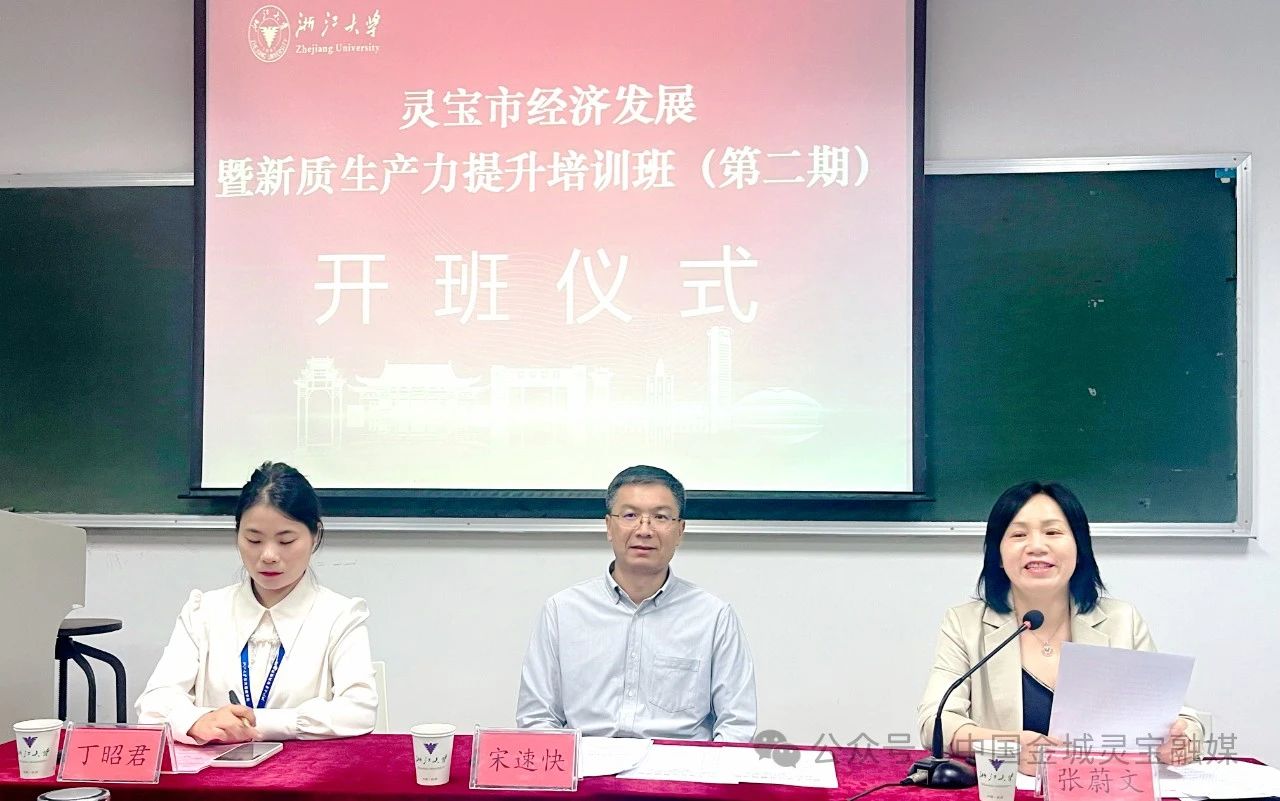 近日,灵宝市经济发展暨新质生产力提升培训班(两期)在浙江大学举办,浙江大学公共管理学院副院长谭荣、张蔚文,灵宝市委书记张志刚,市委副书记、市长宋速快分别出席一期二期开班仪式并致辞,市领导、各乡镇及部分市直单位主要负责同志、重点企业家等120余人参加。