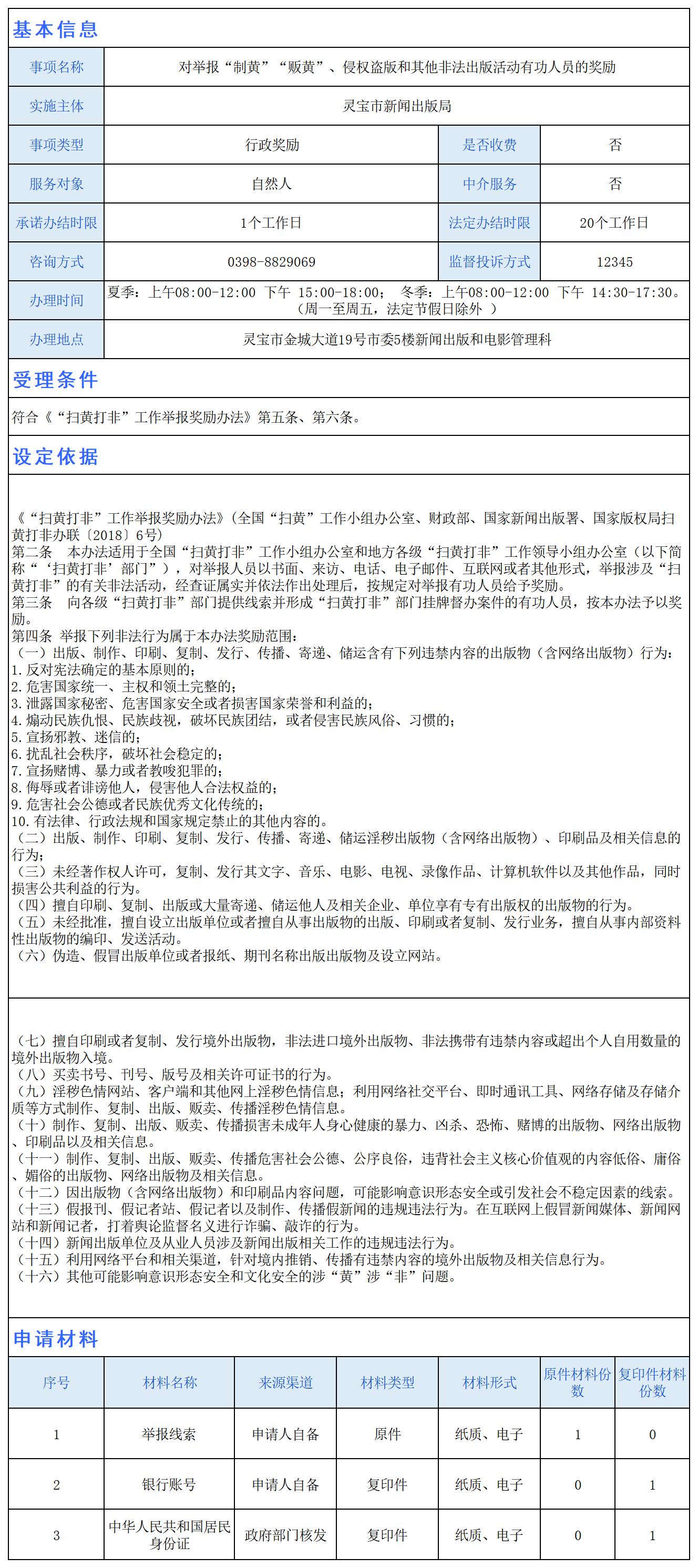 对举报“制黄”“贩黄”、侵权盗版和其他非法出版活动有功人员的奖励