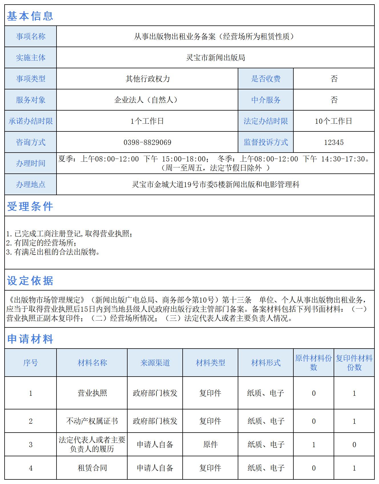 从事出版物出租业务备案(经营场所为租赁性质)