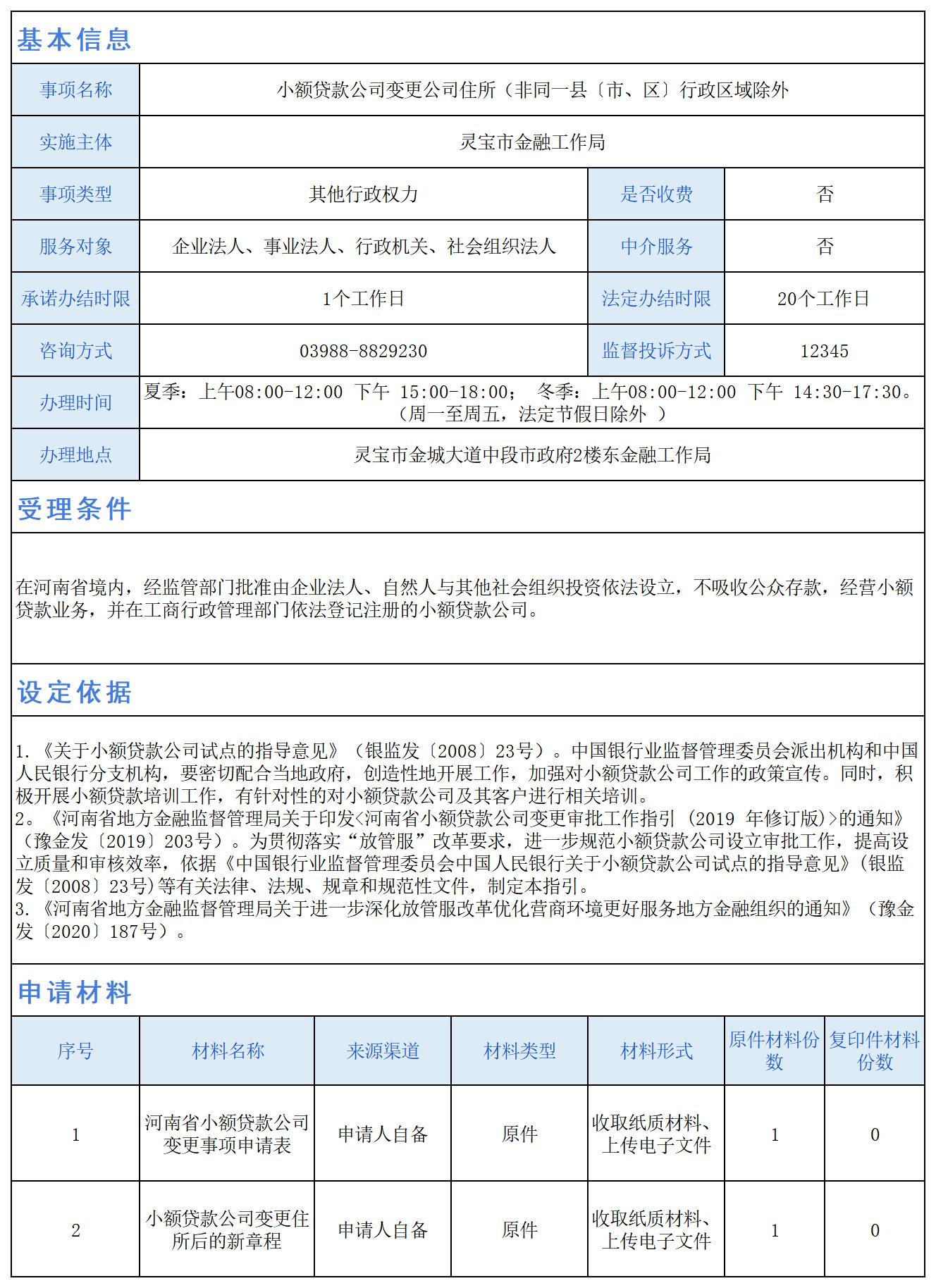 小额贷款公司变更公司住所(非同一县〔市、区〕行政区域除外