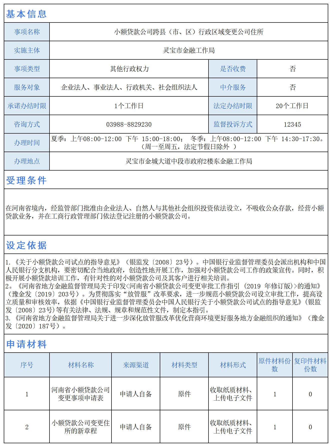小额贷款公司跨县(市、区)行政区域变更公司住所