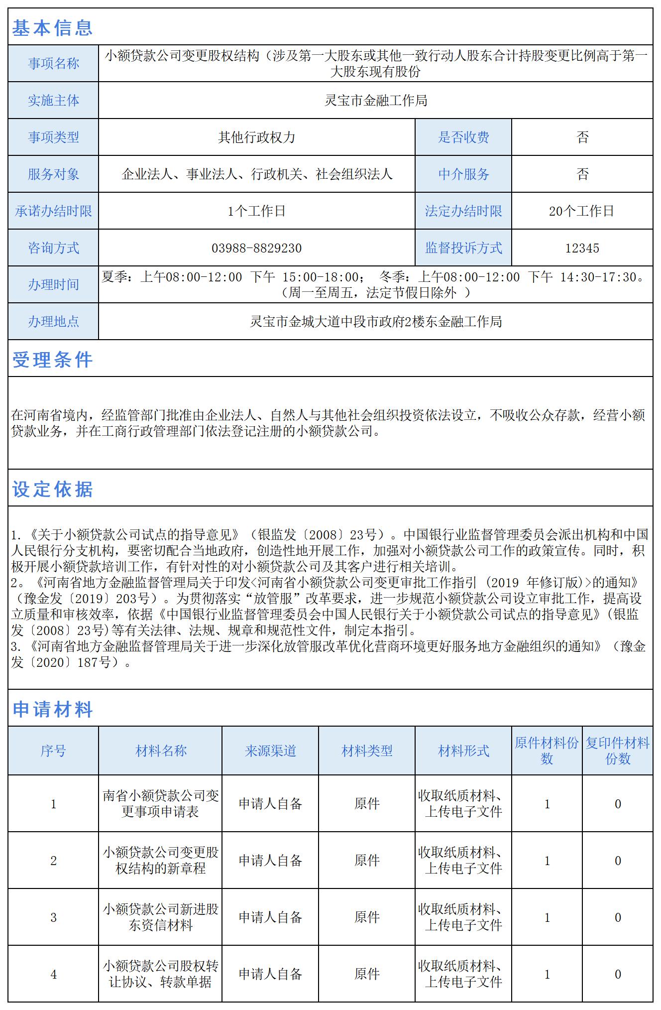 小额贷款公司变更股权结构(涉及第一大股东或其他一致行动人股东合计持股变更比例高于第一大股东现有股份
