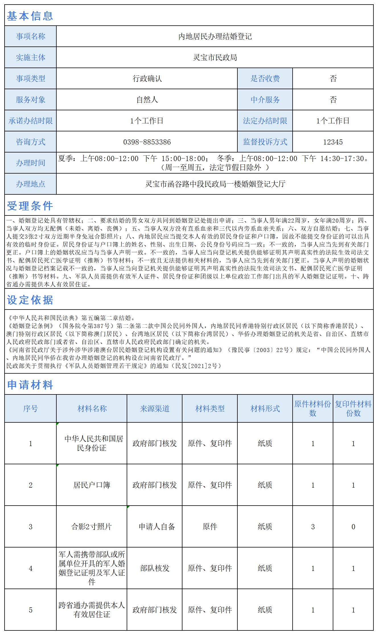 内地居民办理结婚登记