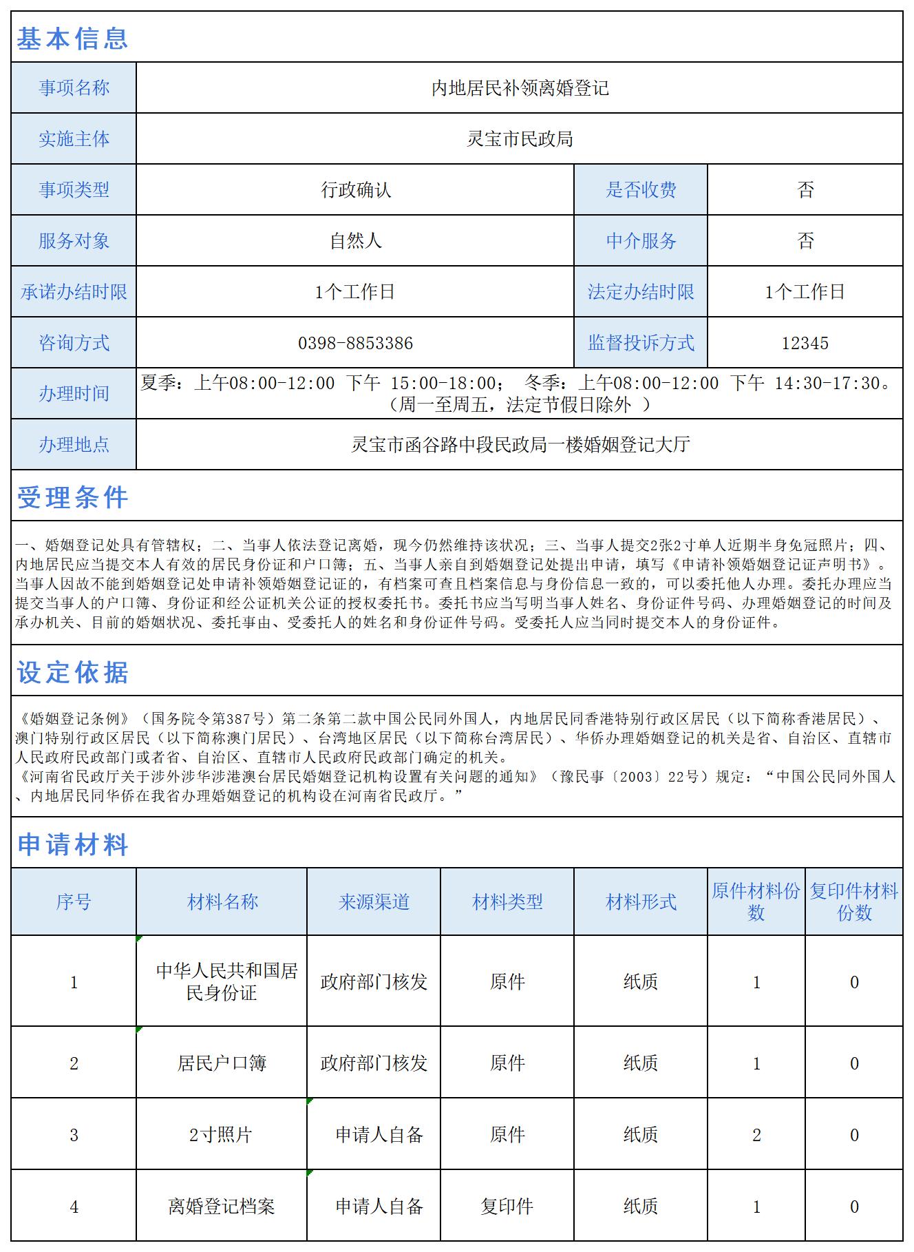 内地居民补领离婚登记