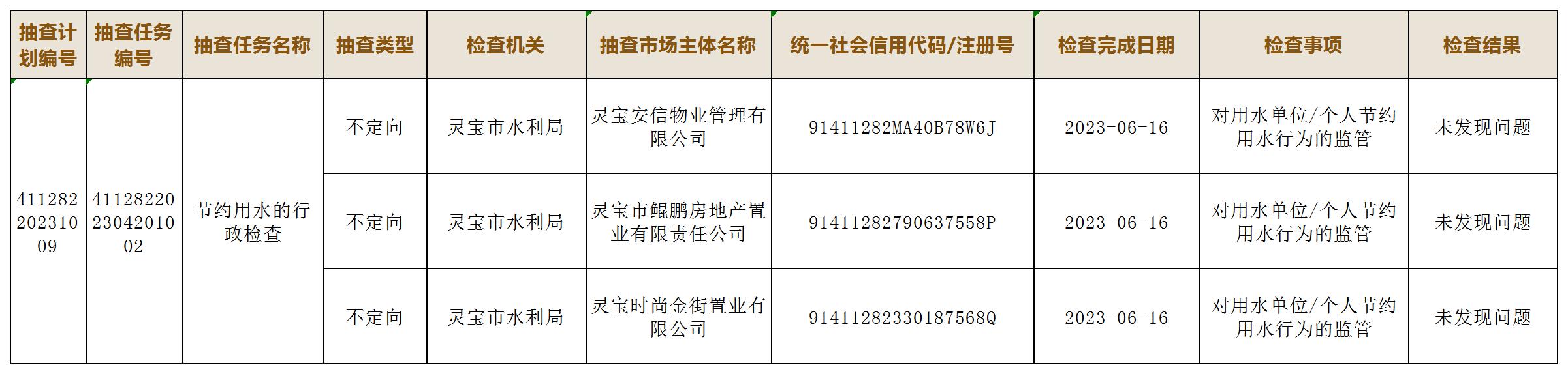 灵宝市水利局2023年对用水单位/个人节约用水行为的行政检查结果