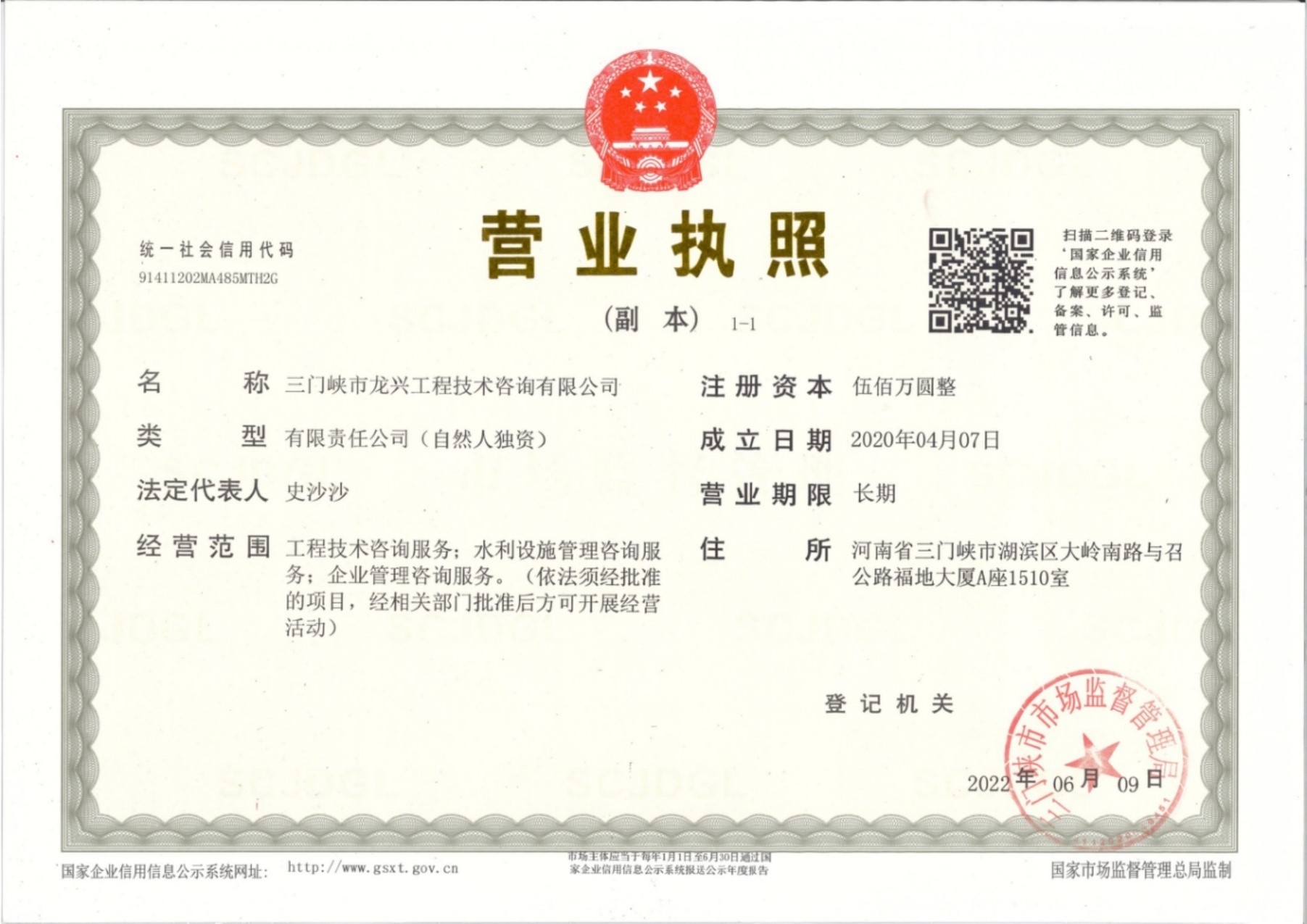 三门峡市龙兴工程技术咨询有限公司成立于2020年4月,注册资金伍佰万元整,主要从事水土保持方案编制、水土保持监测、监理、验收总结报告编制,水资源论证、防洪影响评价报告编制等。