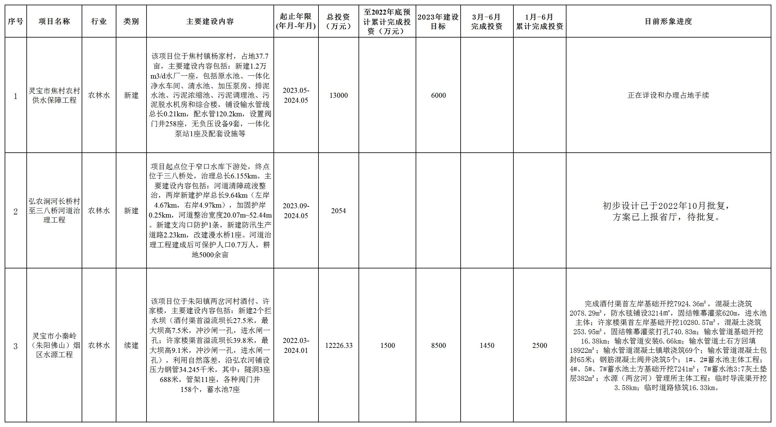 灵宝市水利局2023年新建、续建重点项目二季度进展情况(2023年3月-6月)
