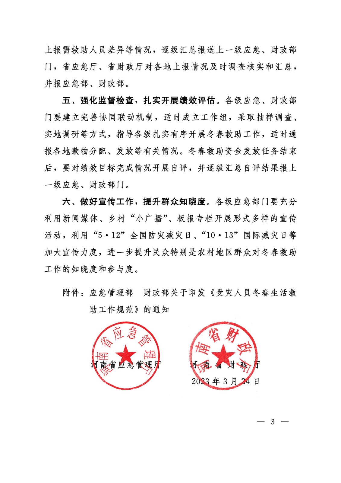 附件:河南省应急管理厅 河南省财政厅转发应急管理部 财政部关于印发《受灾人员冬春生活救助工作规范》的通知_00