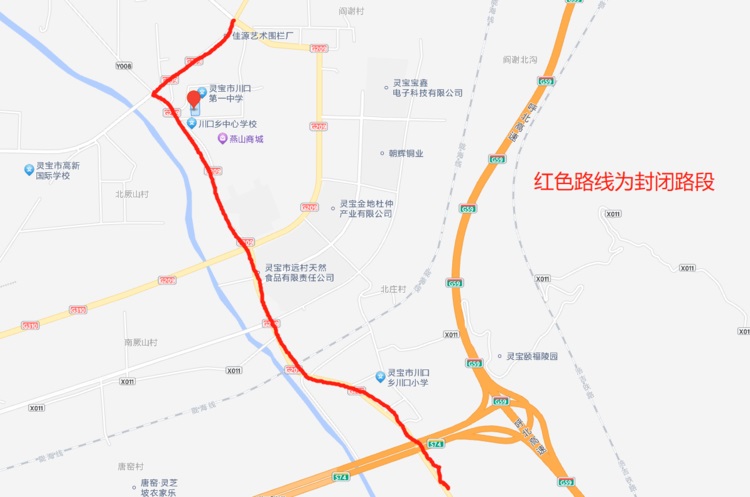 三、车辆绕行线路:封闭施工期间过往车辆可绕行G59呼北高速、灵宝绕城高速、G30连霍高速;施工沿线村庄车辆限时段放行,过往车辆请提前规划好出行路线。