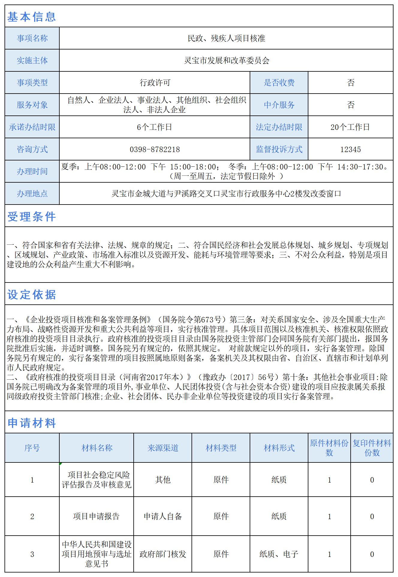 民政、残疾人项目核准