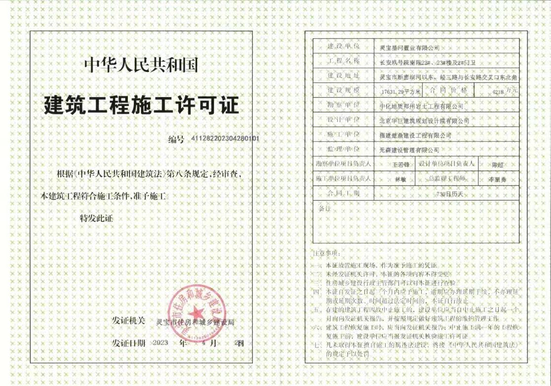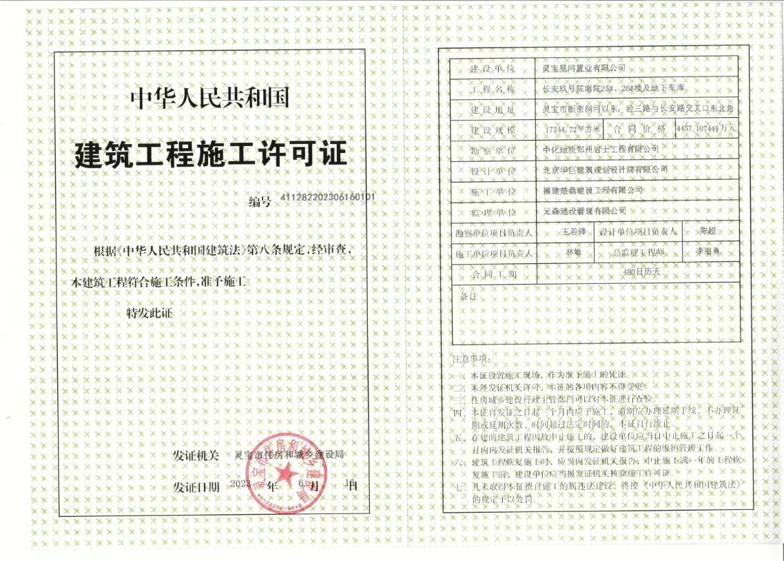 长安玖号院南院项目建筑工程施工许可证信息