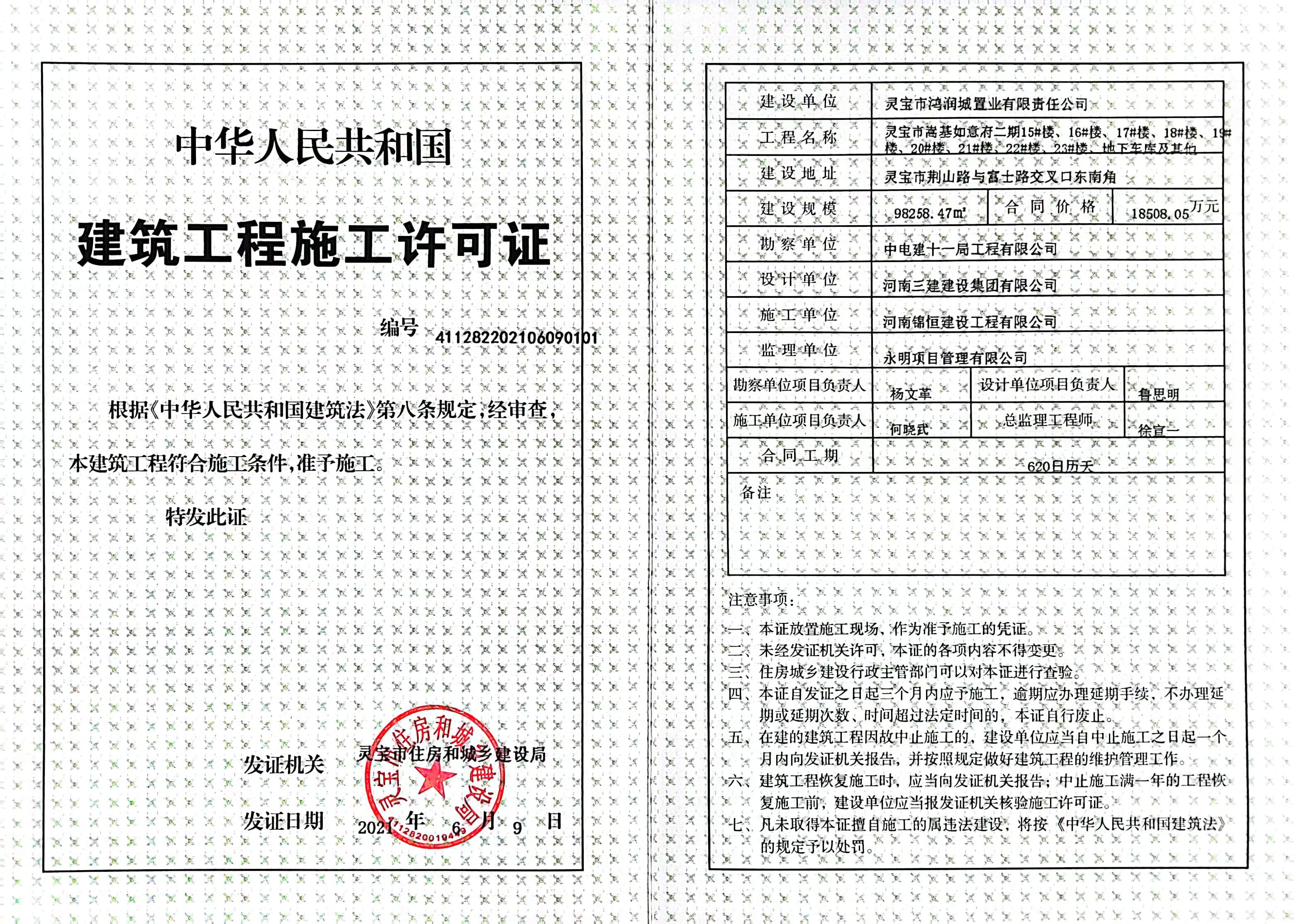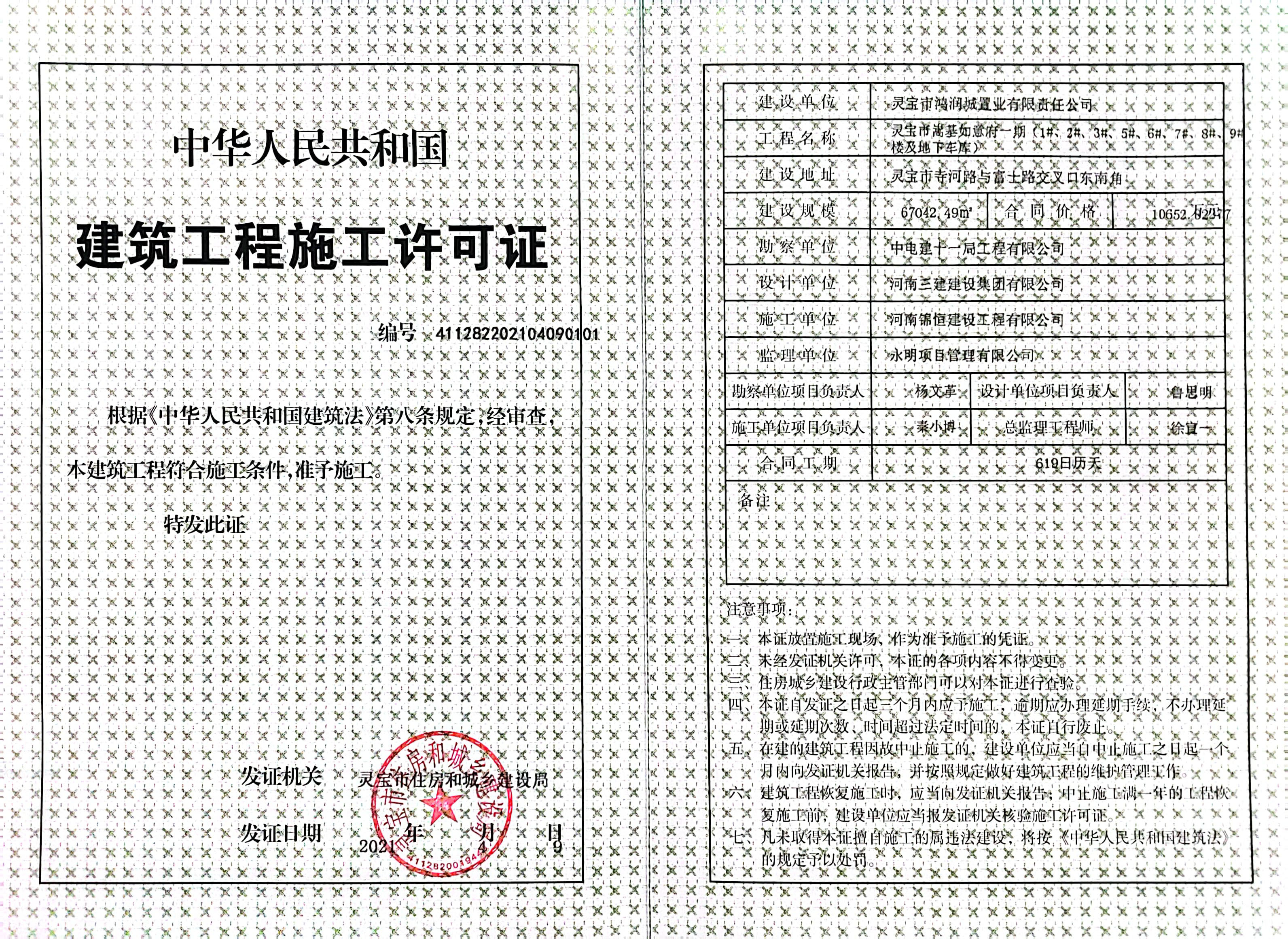嵩基如意府一期二期项目分别于2021年4月9日、2021年4月30日、2021年6月9日办理三个建筑工程施工许可证。