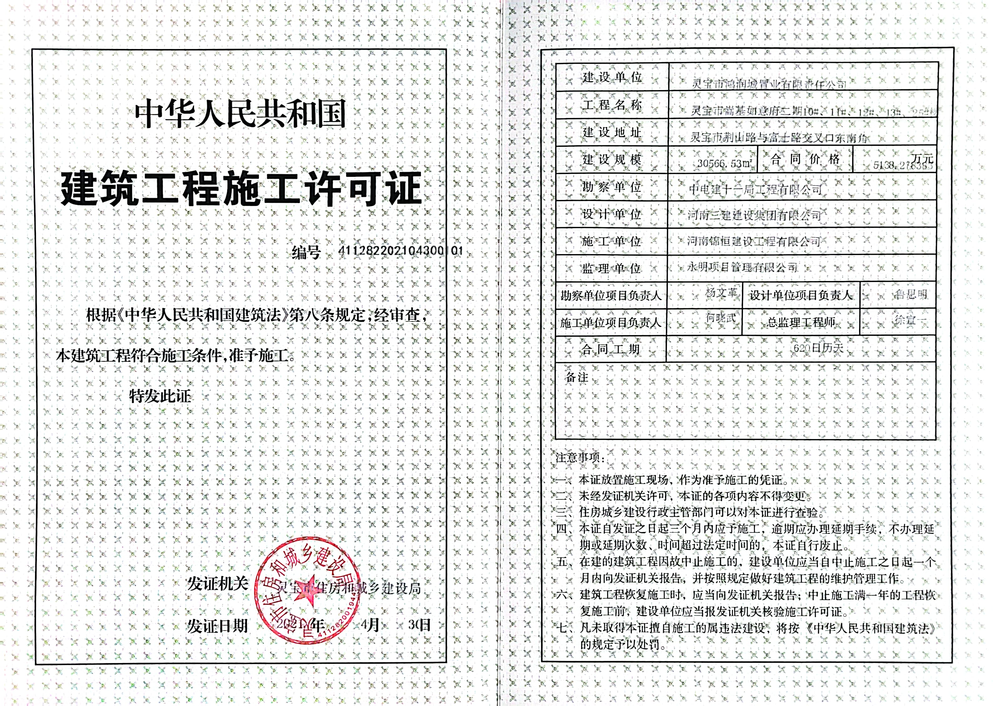 嵩基如意府一期二期项目建筑工程施工许可证信息