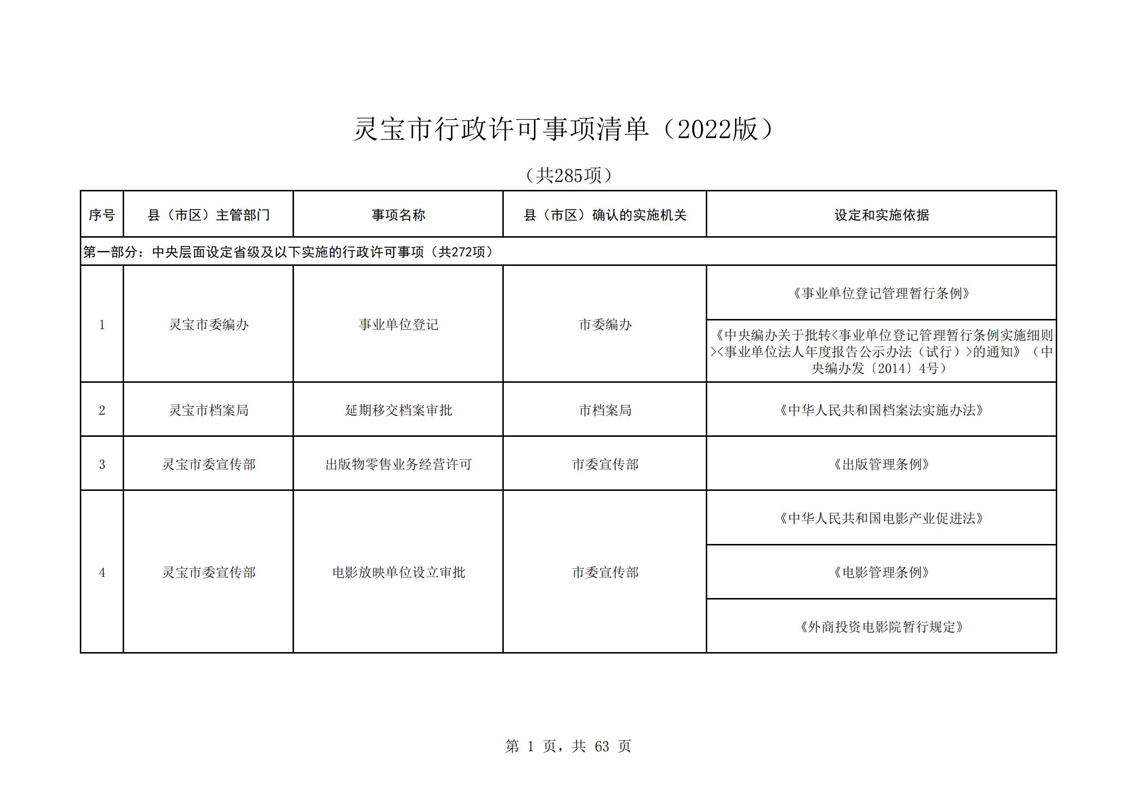 灵宝市行政许可事项清单(2022版)